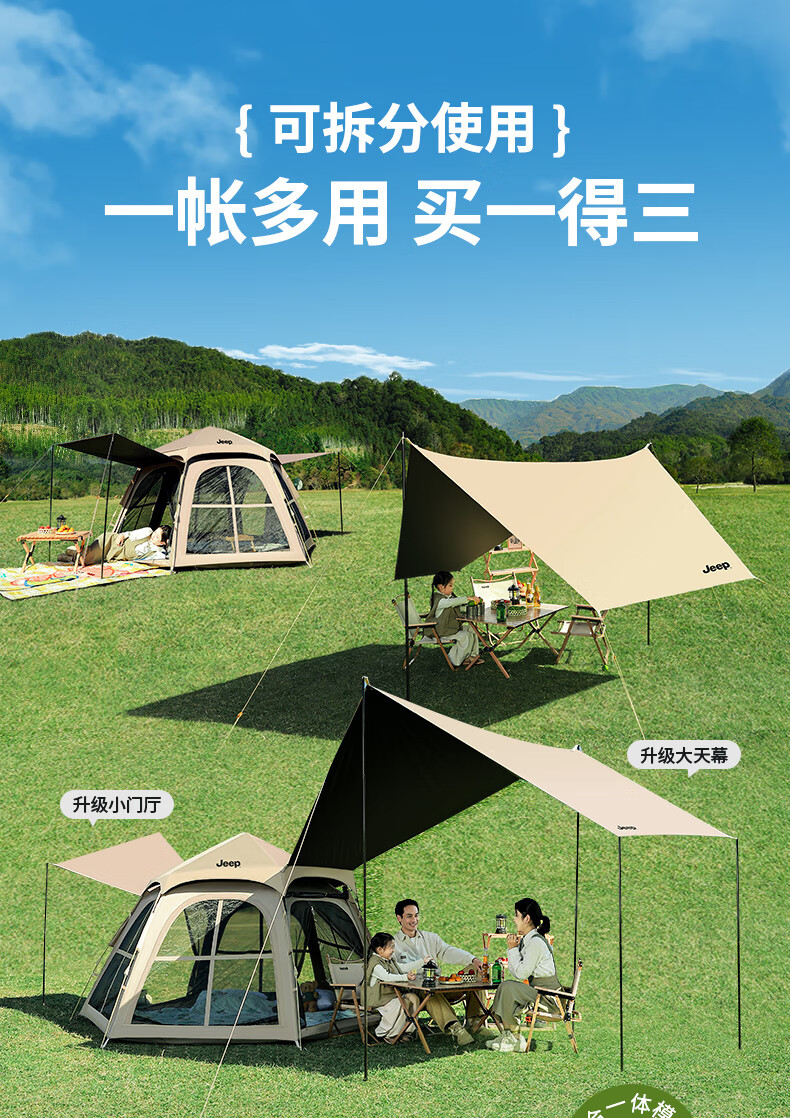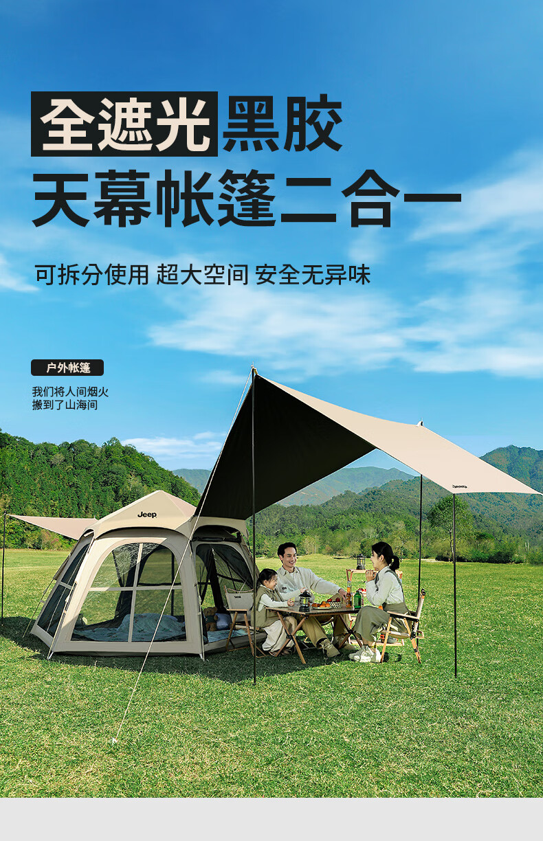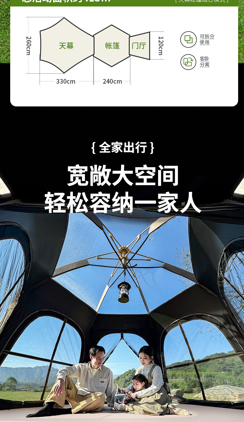 北极狼帐篷户外全自动天幕二合一露营便携速开加厚黑胶防雨防晒野营装备 【大号】6-8人+天幕