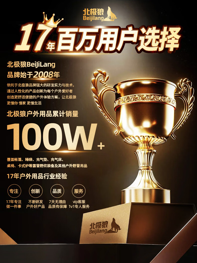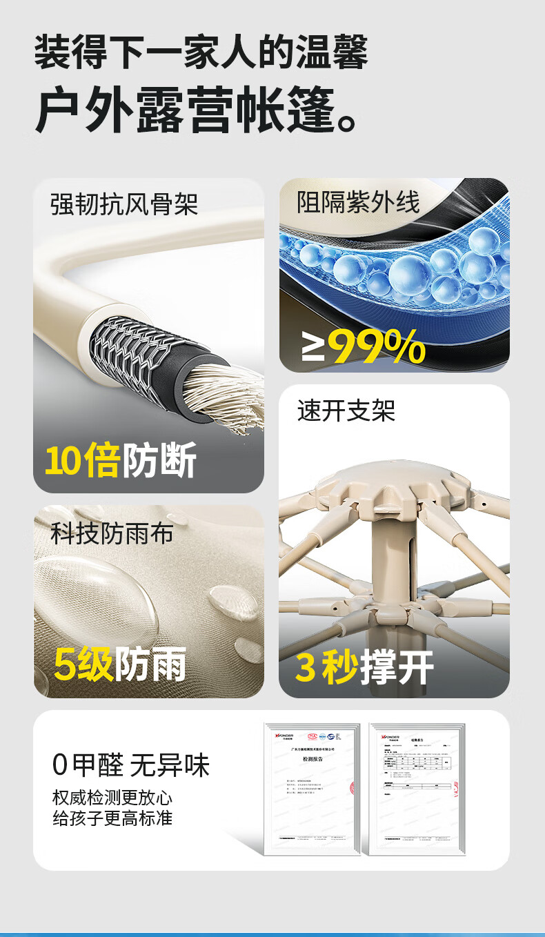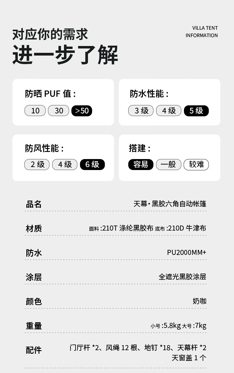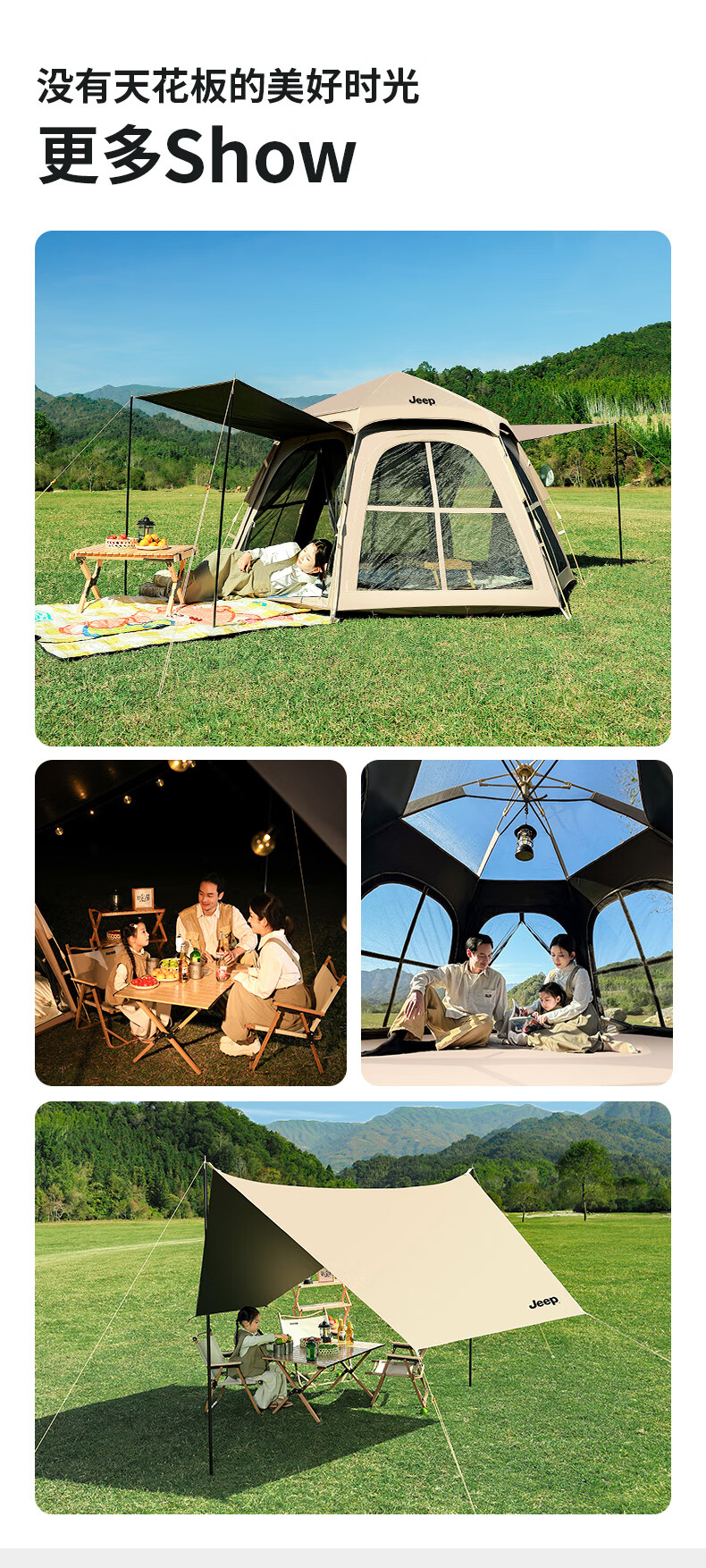 北极狼帐篷户外全自动天幕二合一露营便携速开加厚黑胶防雨防晒野营装备 【大号】6-8人+天幕