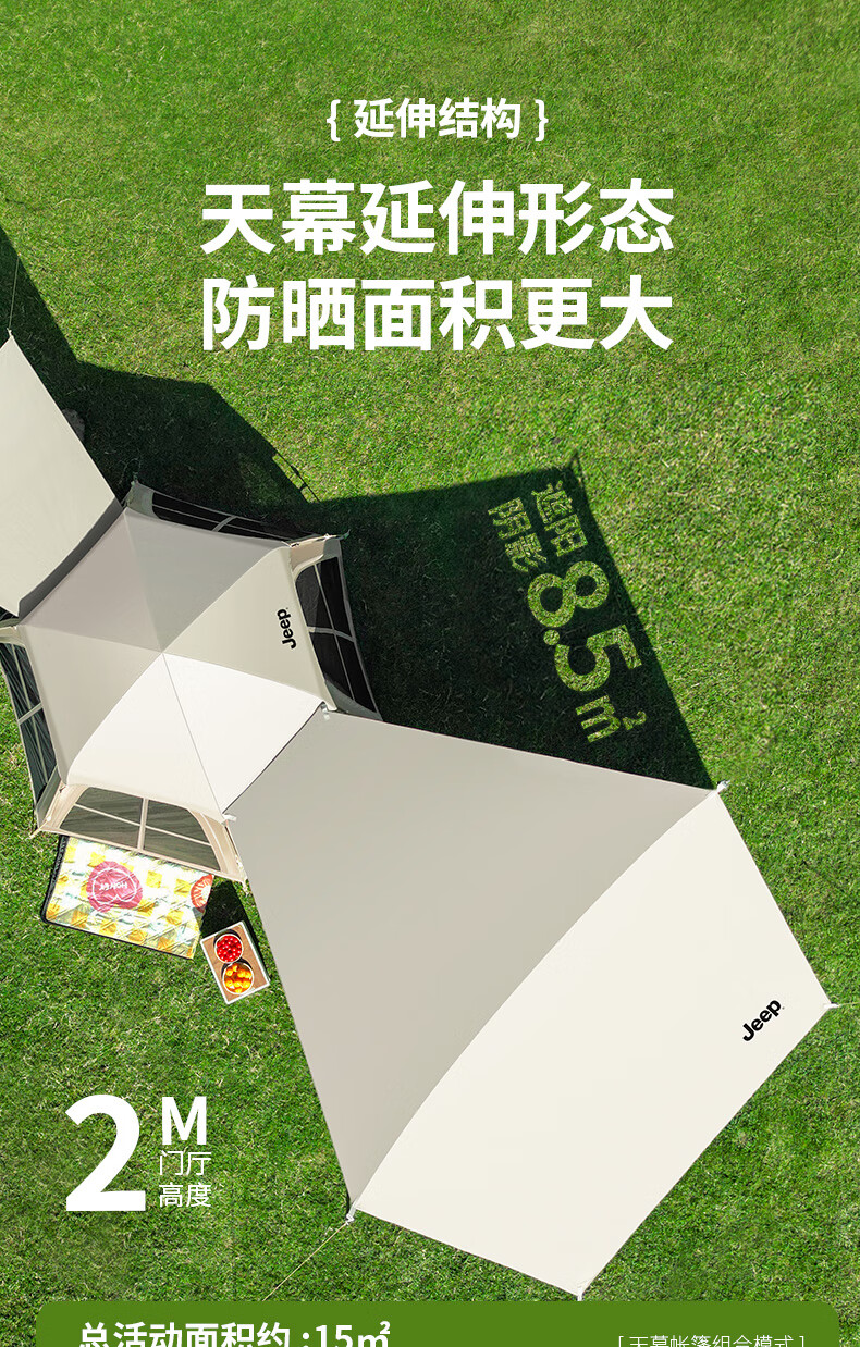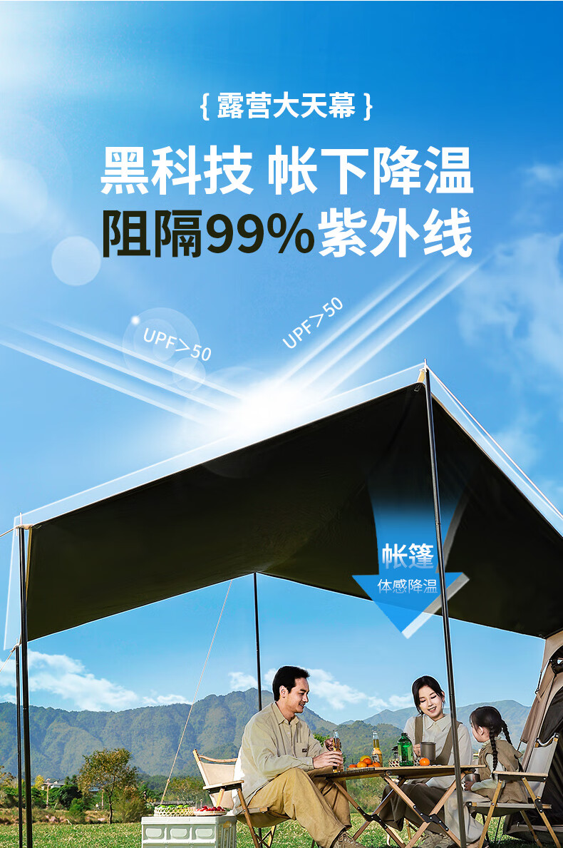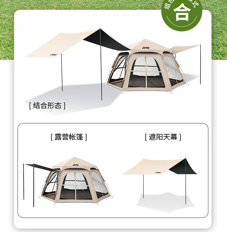 何佳功新燕尾天幕户外露营懒人免安装加厚黑胶防晒遮阳防雨速搭天幕 速搭型12㎡银胶天幕3.3*3.6米2-4人(1