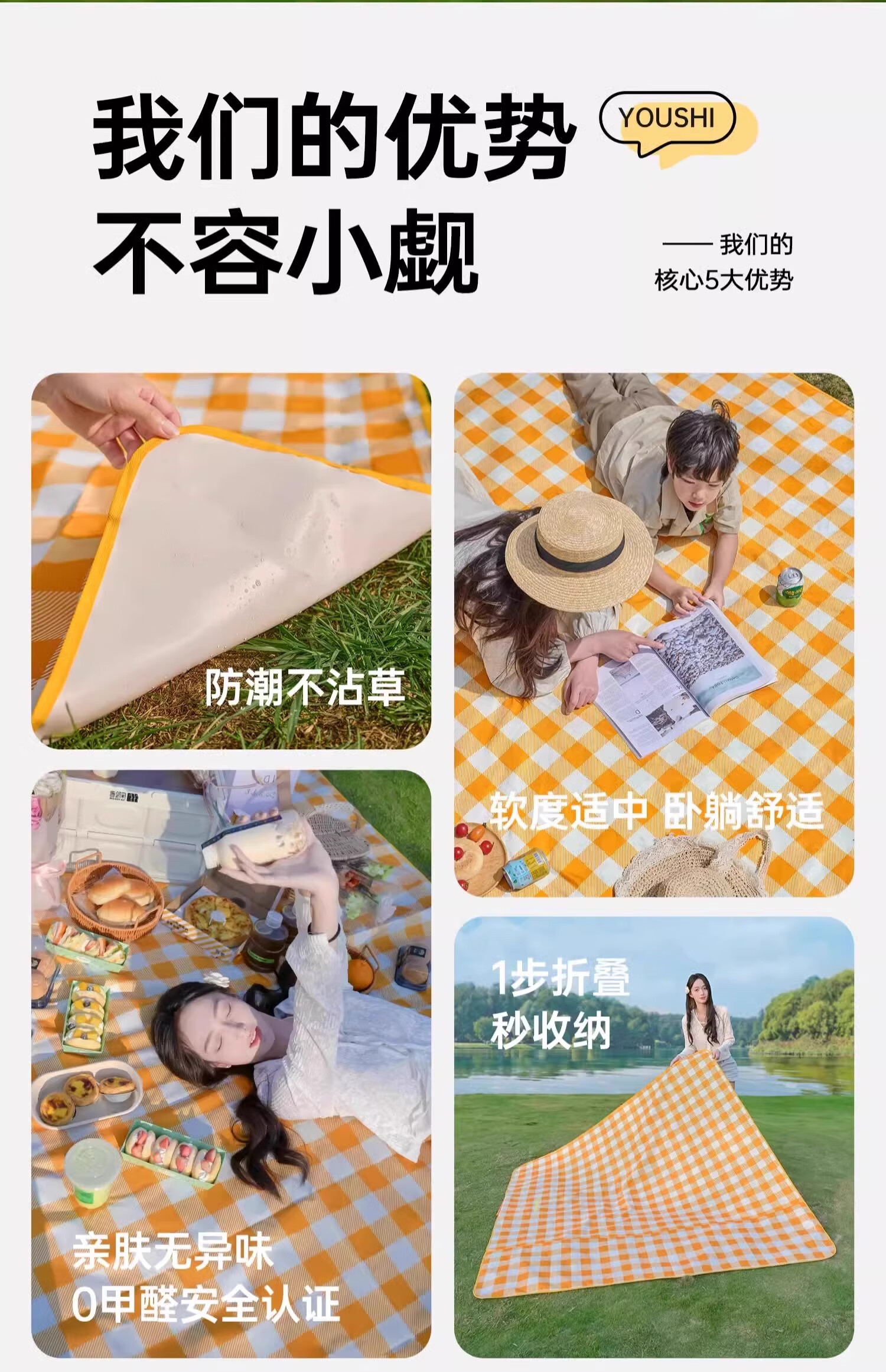 这垫子一铺,周末野餐、露营、晒太阳全搞定,简直是户外生活的神助攻!表层面料柔软亲肤,安全无异味