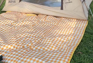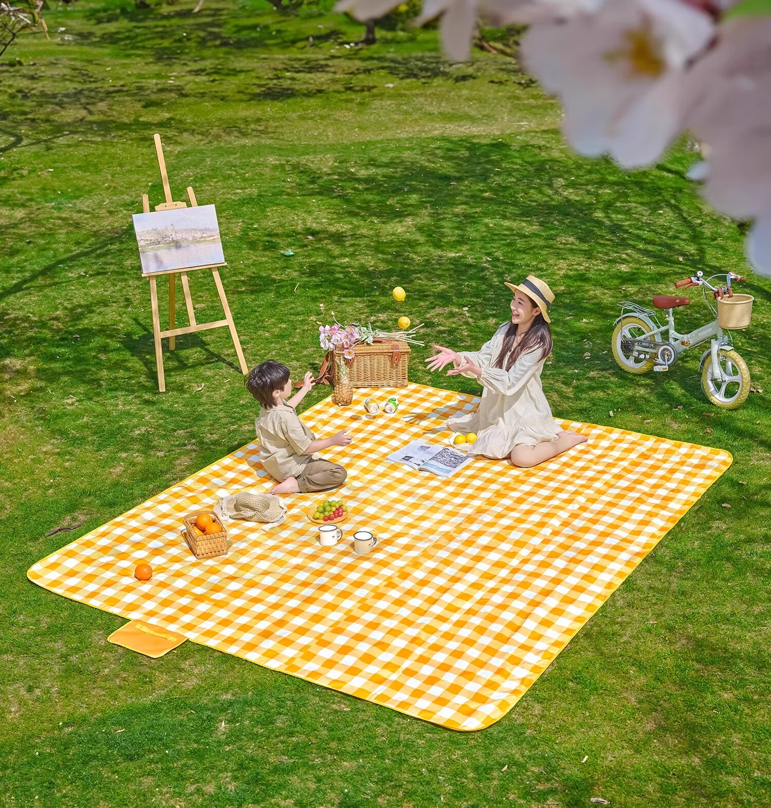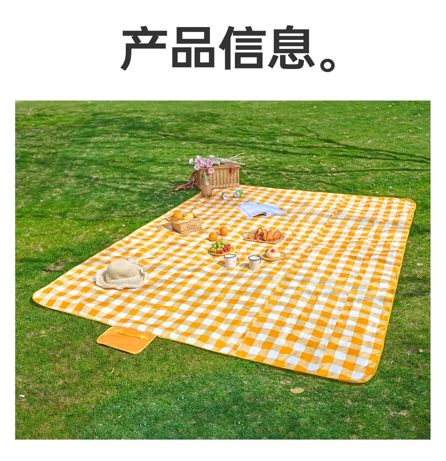原始人野餐垫防潮垫防水防潮加厚露营垫加厚户外露营折叠户外野餐坐垫 黄格2*1.5m-厚约5mm
