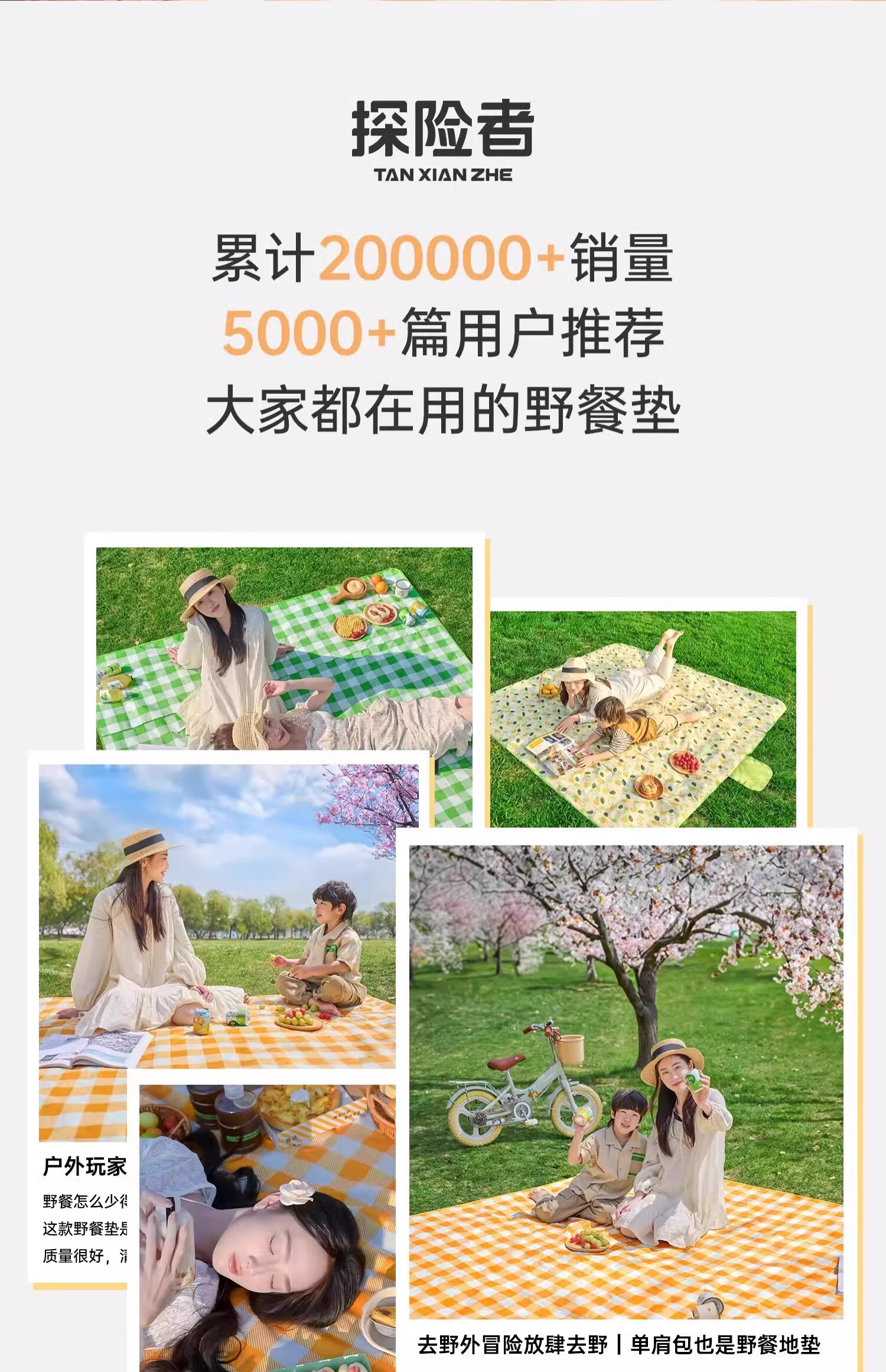 探险者探险者野餐垫防潮垫便携加厚防水户外帐篷露营野炊地垫可机洗郊游 牛津野餐垫颜色随机