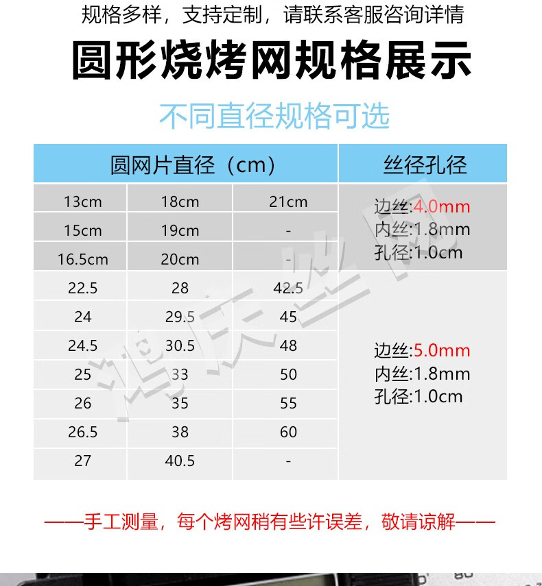 咏颖(YTYIN)烧烤网圆形加粗加厚家用户外露营围炉煮茶烤肉韩式商用方格熏肉网 直径16.5【厘米】到手2个