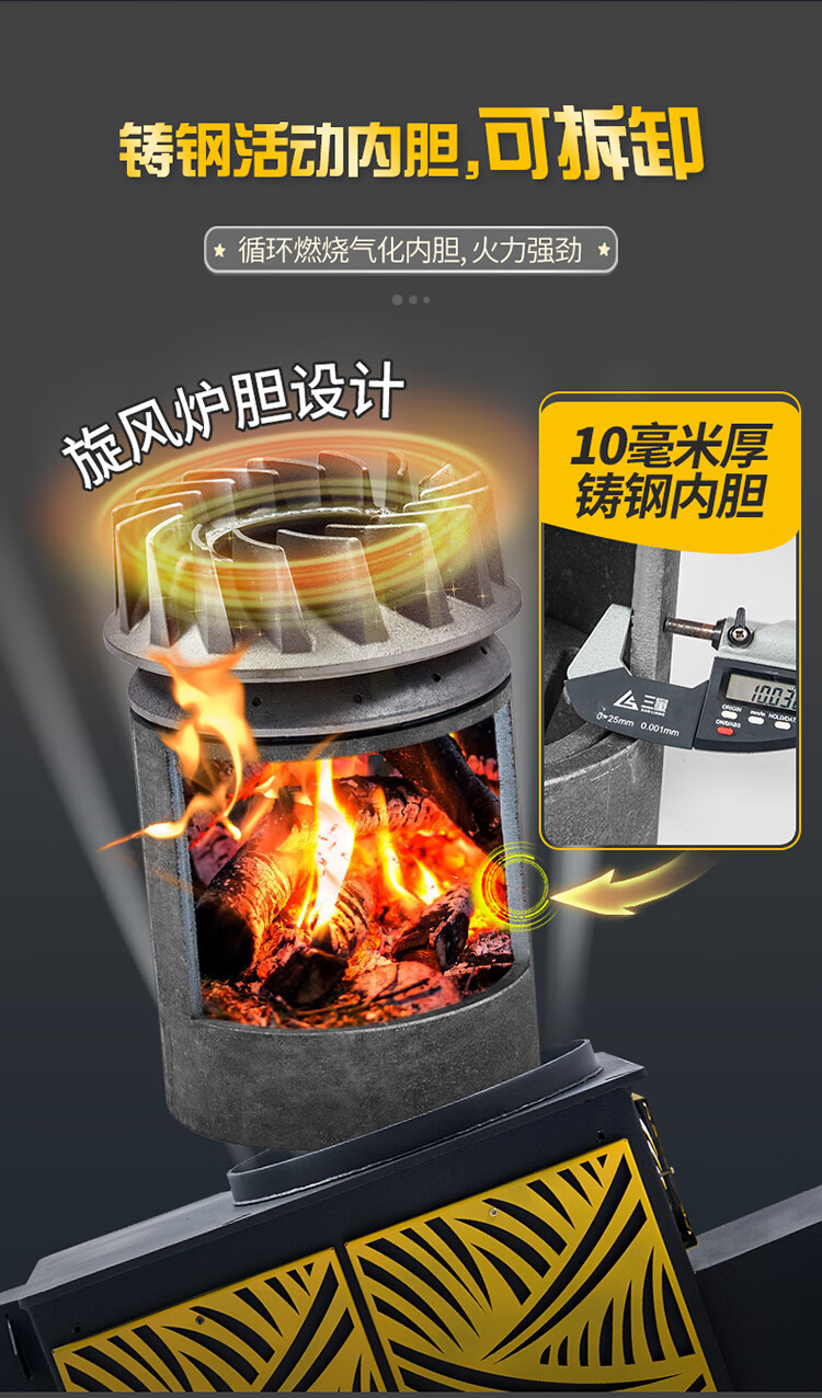 土灶旺冬季柴火灶加厚加高农村取暖炉烧柴家用节能采暖炉室内柴煤两用多功能回风炉烤火炉子 特厚款 1米加厚不锈钢【柴炉】
