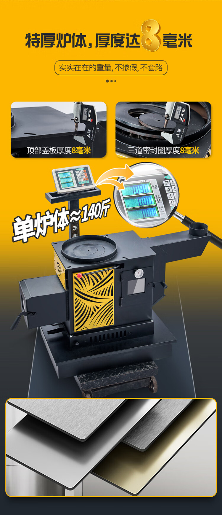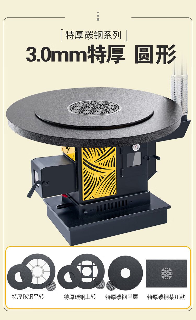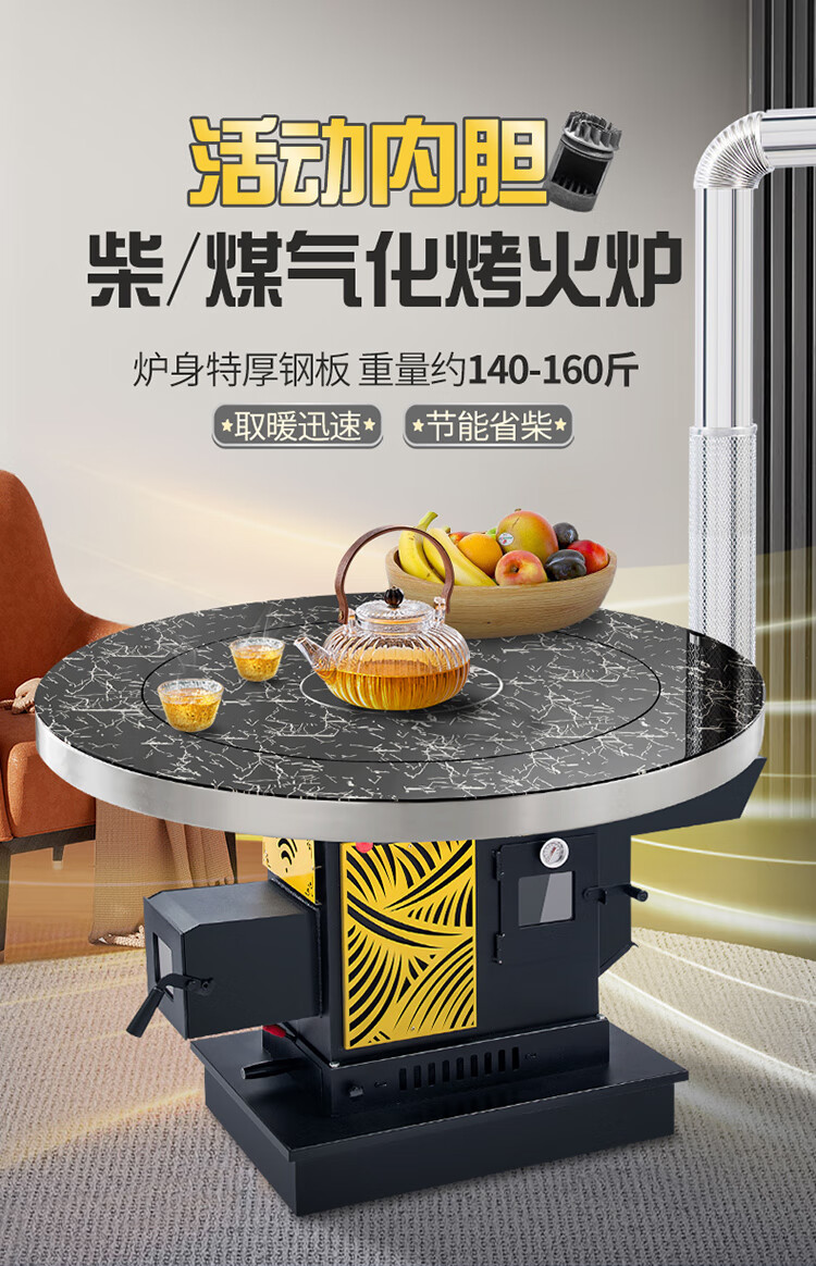昊燃 【送货上门】加厚气化炉农村家用烤火炉柴煤两用汽化炉节能暖炉 1.2米加厚不锈钢平转桌面+气化炉