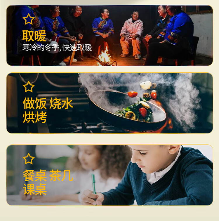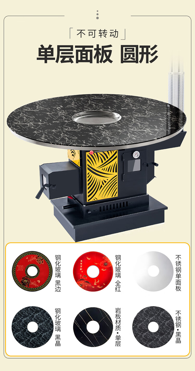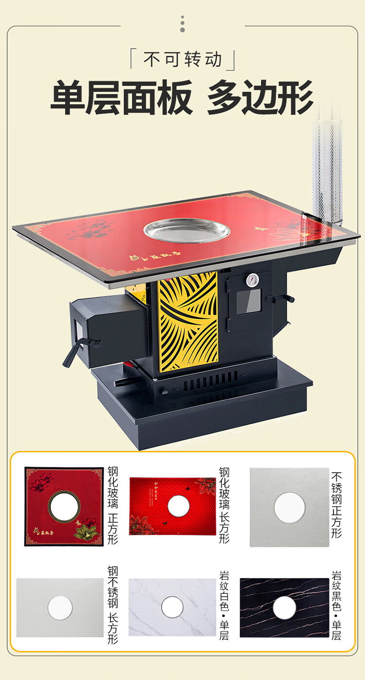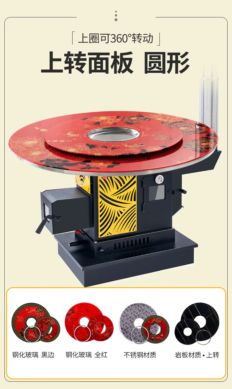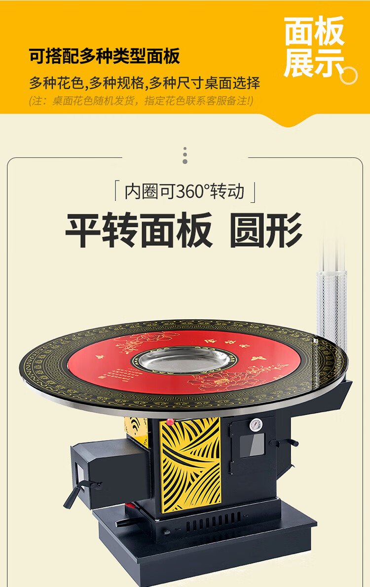 能师傅【送货上门】气化炉家用室内烤火炉柴煤两用节能无烟柴火炉灶农村 1.2米平转防爆玻璃桌面【6-8人 柴煤两用 】