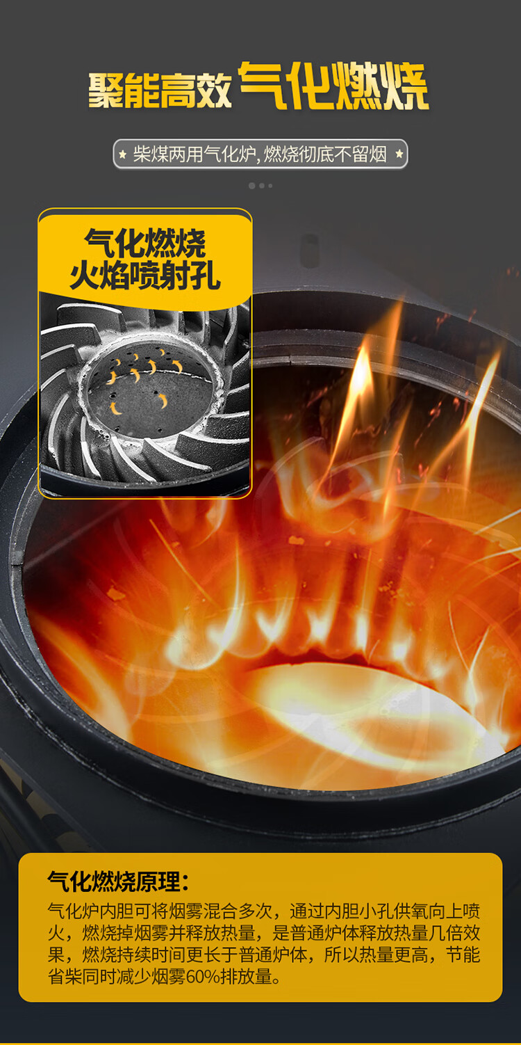 烽点烽点气化炉烧木柴煤两用农村家用冬季取暖室内无烟升温乡下大锅台 中号观月气化炉+配件