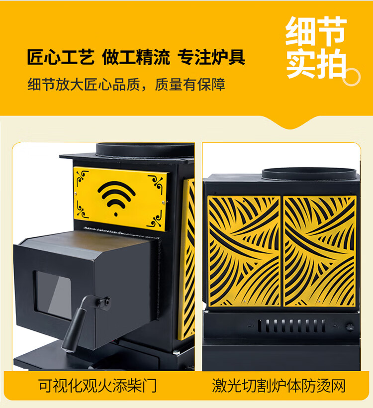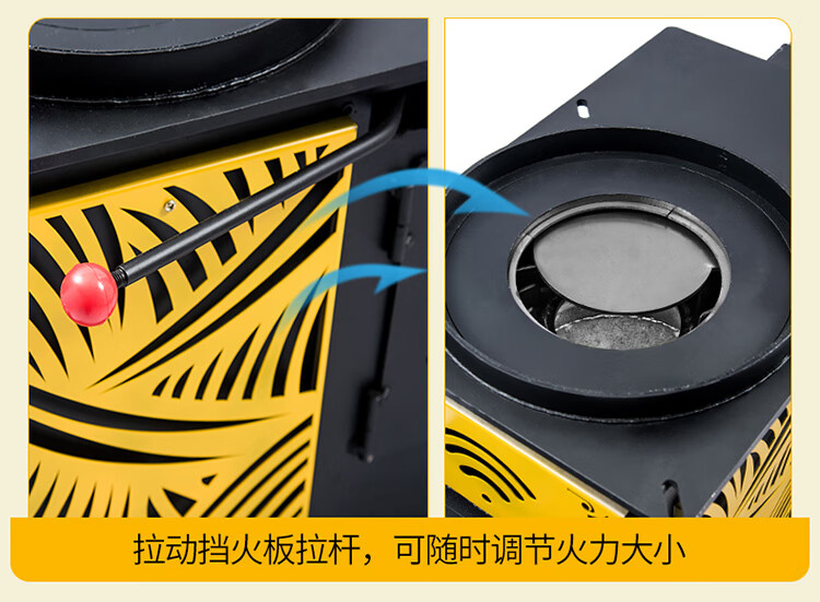 昊燃 室内烤火炉柴煤两用回风炉农村取暖器家用煤炭烧柴不锈钢炉子 A款柴煤烤火炉90*90*64(高)