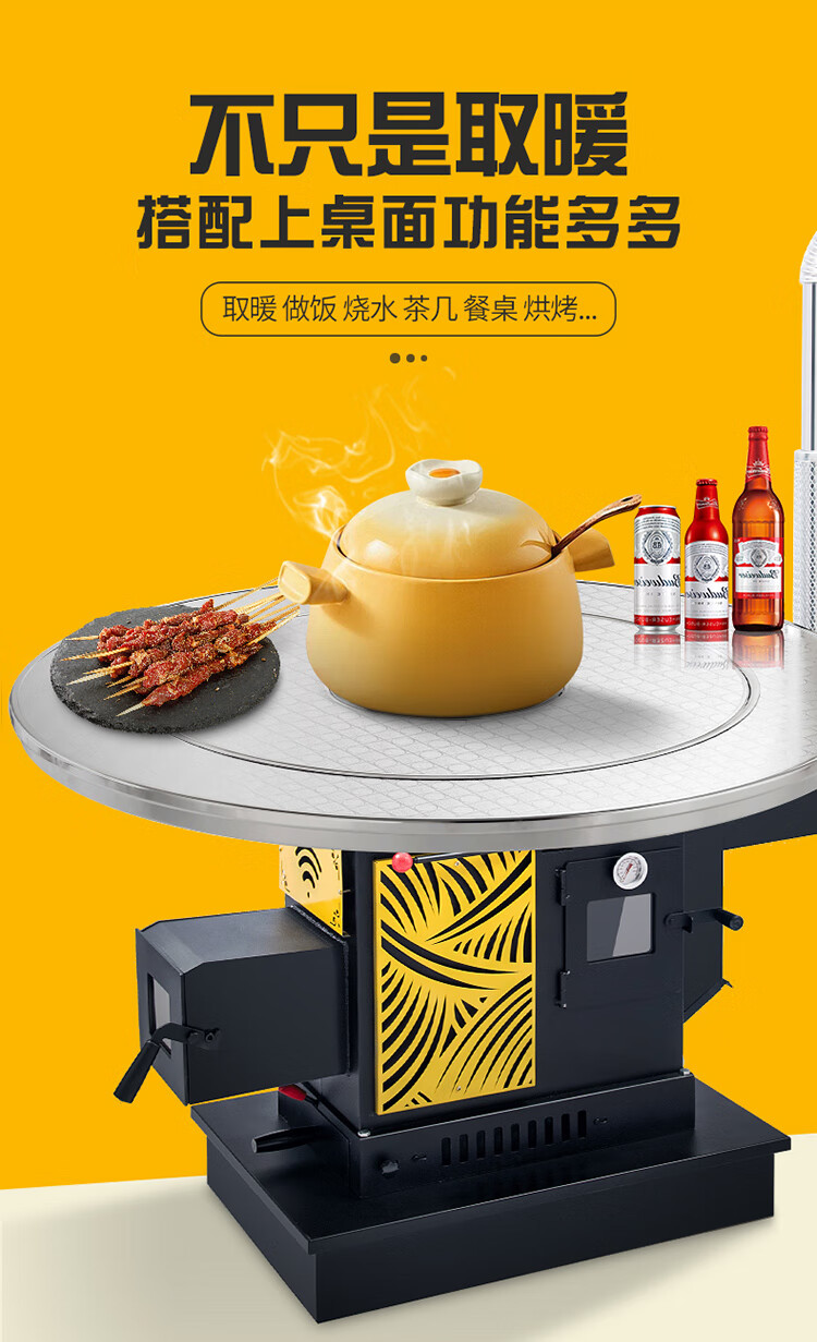 璞灶旺冬季柴火灶加厚加高农村取暖炉烧柴家用节能柴煤两用多功能回风炉 1米圆桌不锈钢(柴火炉)