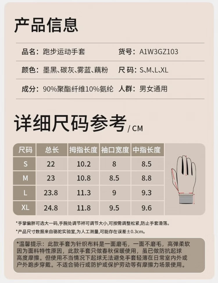 贴合手掌,手指灵活,日常简单使用手机不用脱手套,比较方便。气温零度,保暖效果能接受。