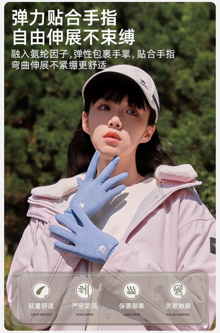 贴合整个手掌,手指自然灵活,日常简单使用手机不用脱手套,触感灵敏,比较方便。保暖效果能够满足,保温暖和。