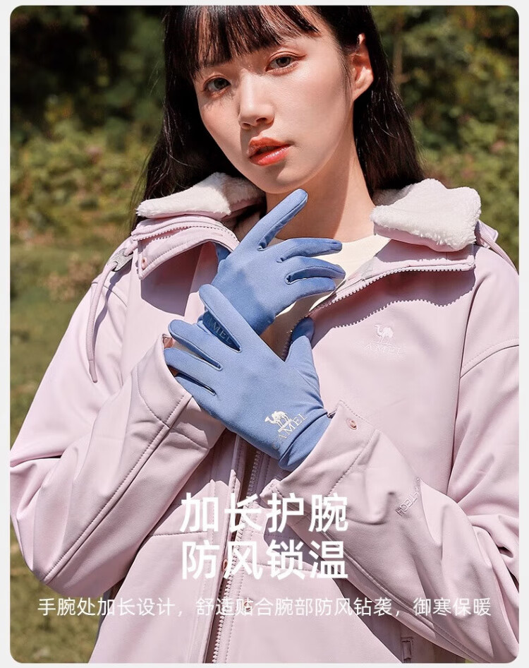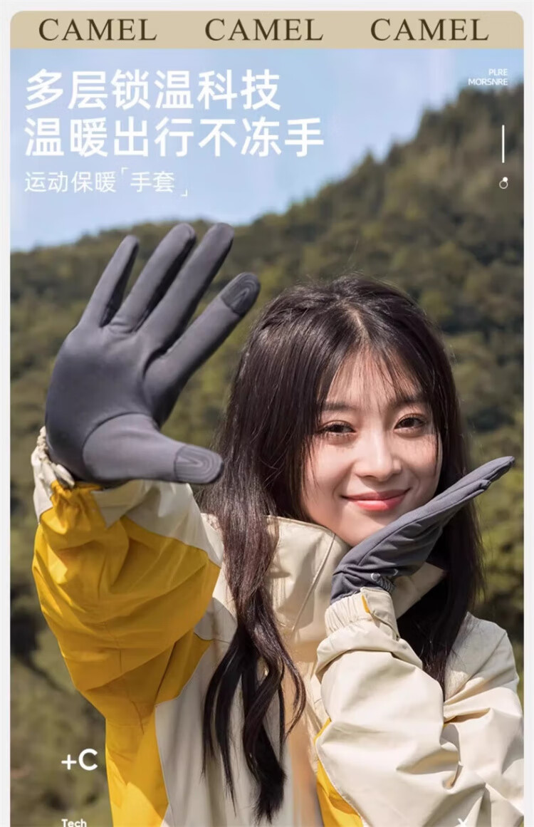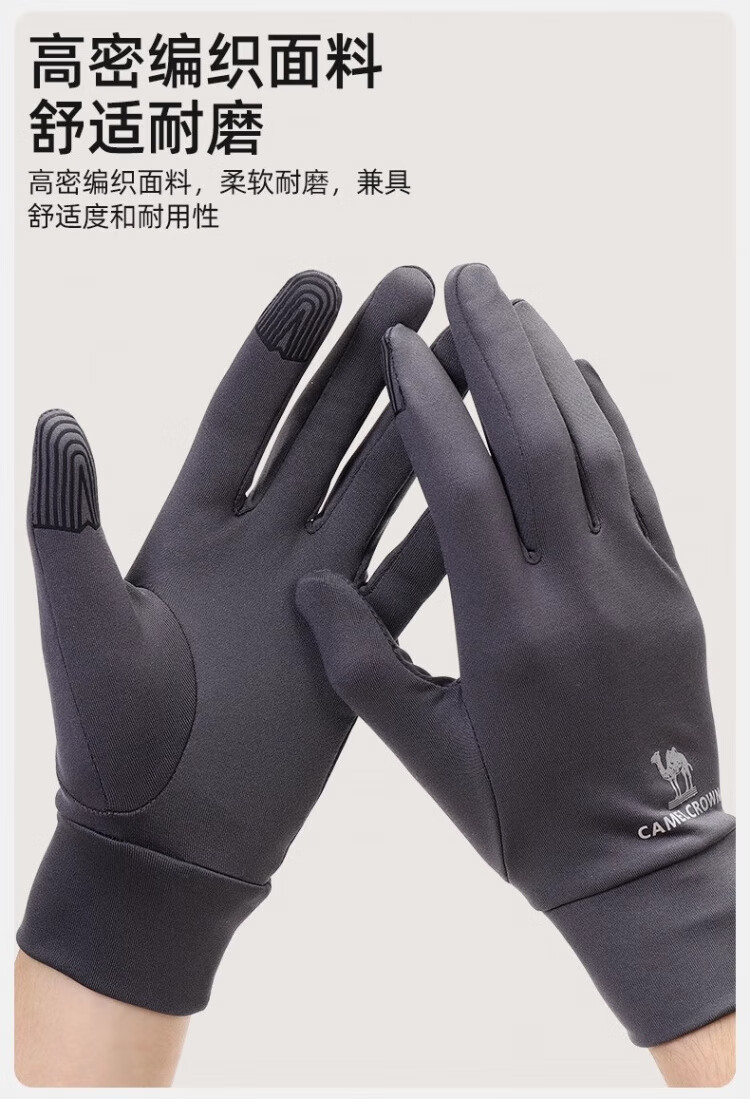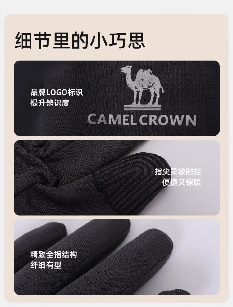 骆驼(CAMEL) 骑行手套男秋冬季户外摩托车触屏登山手套女哈尔滨旅游保暖装备 【升级防滑】墨黑,1T32264472 S