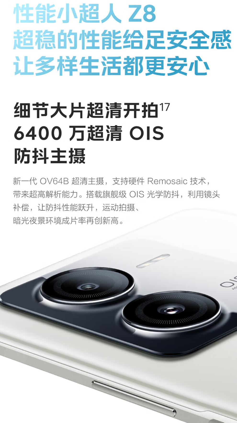 iQOOZ8 天玑8200芯片 冰极立体散热 6400万防抖主摄 零感蓝光原彩屏 星野青 8GB+256GB 单机+第三方品牌快充+店保1年