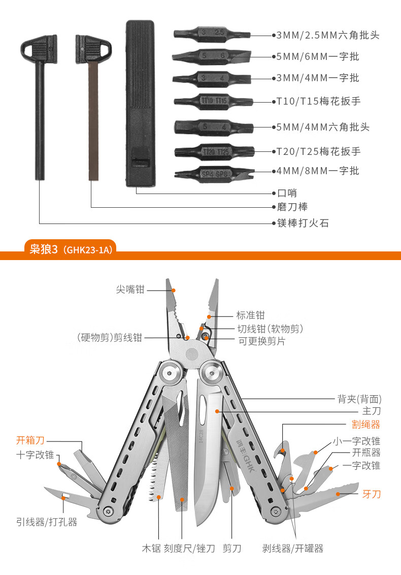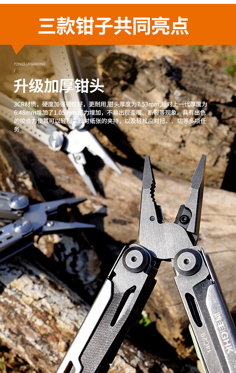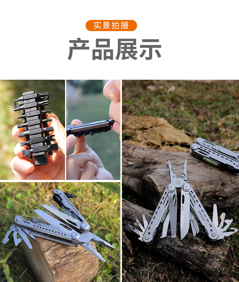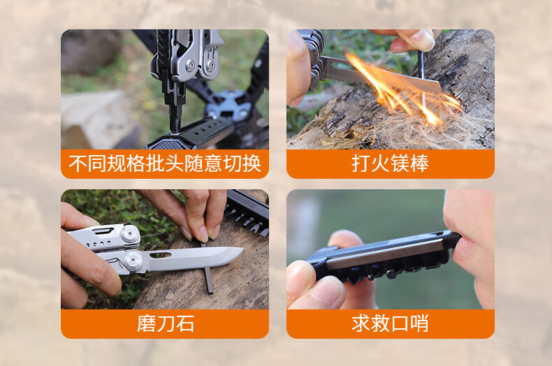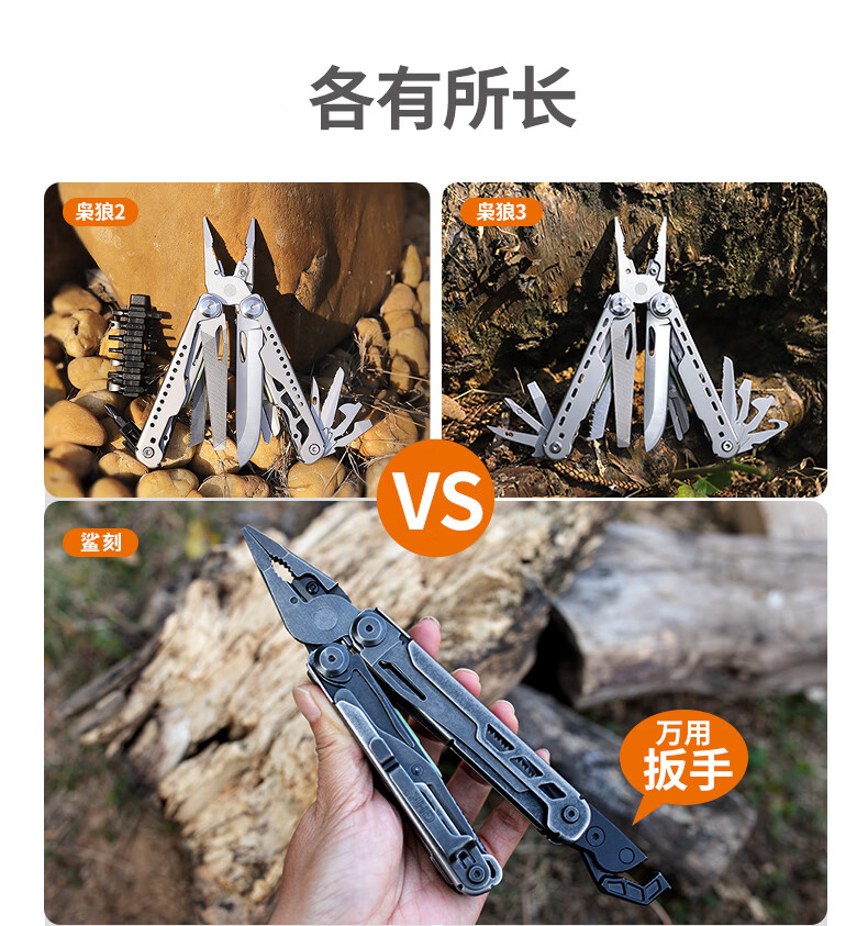 很不错的一款功能刀,板手的设计也很喜欢,适合户外使用,耐不耐用目前不清楚,待日后使用过再评论,但想提一点建议,就是刀具合上后如图 2 左右两边捏一下会晃动,查看后是钳子的问题,(我也买其他品牌的功能刀,但晃动不明显)厂家能不能改进一下,合上后像主刀那个定位小圆点不让两边动?最后能不能送我一条磨刀石?