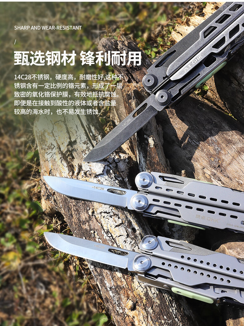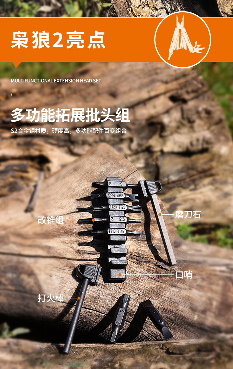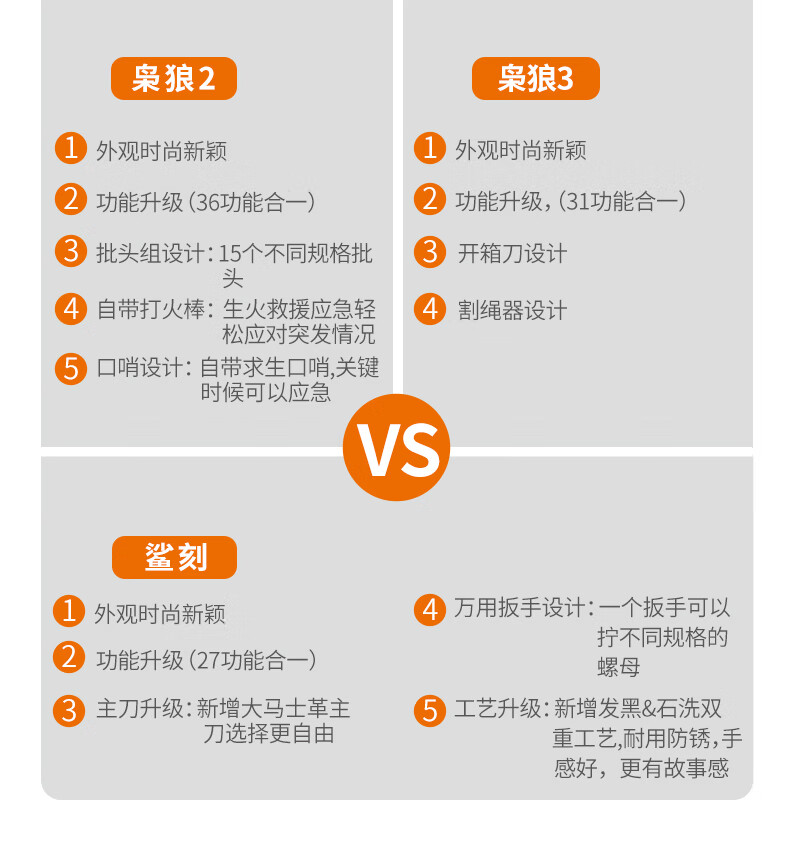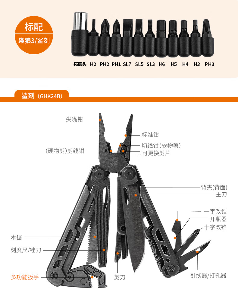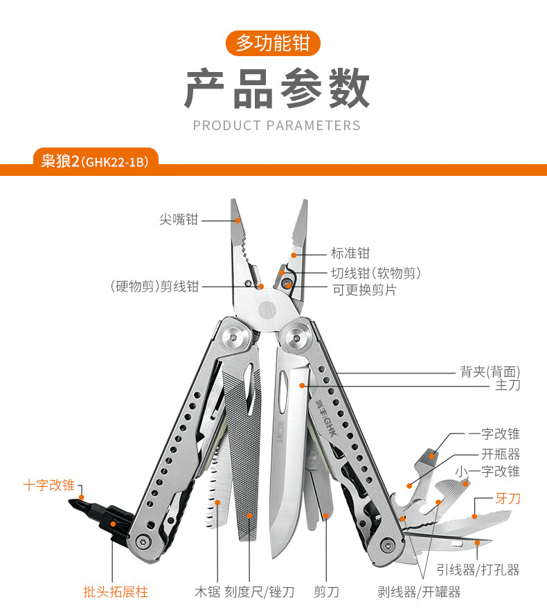 很不错的一款功能刀,板手的设计也很喜欢,适合户外使用,耐不耐用目前不清楚,待日后使用过再评论,但想提一点建议,就是刀具合上后如图 2 左右两边捏一下会晃动,查看后是钳子的问题,(我也买其他品牌的功能刀,但晃动不明显)厂家能不能改进一下,合上后像主刀那个定位小圆点不让两边动?最后能不能送我一条磨刀石?