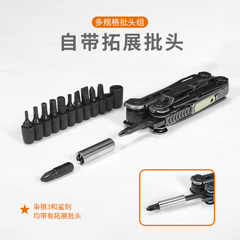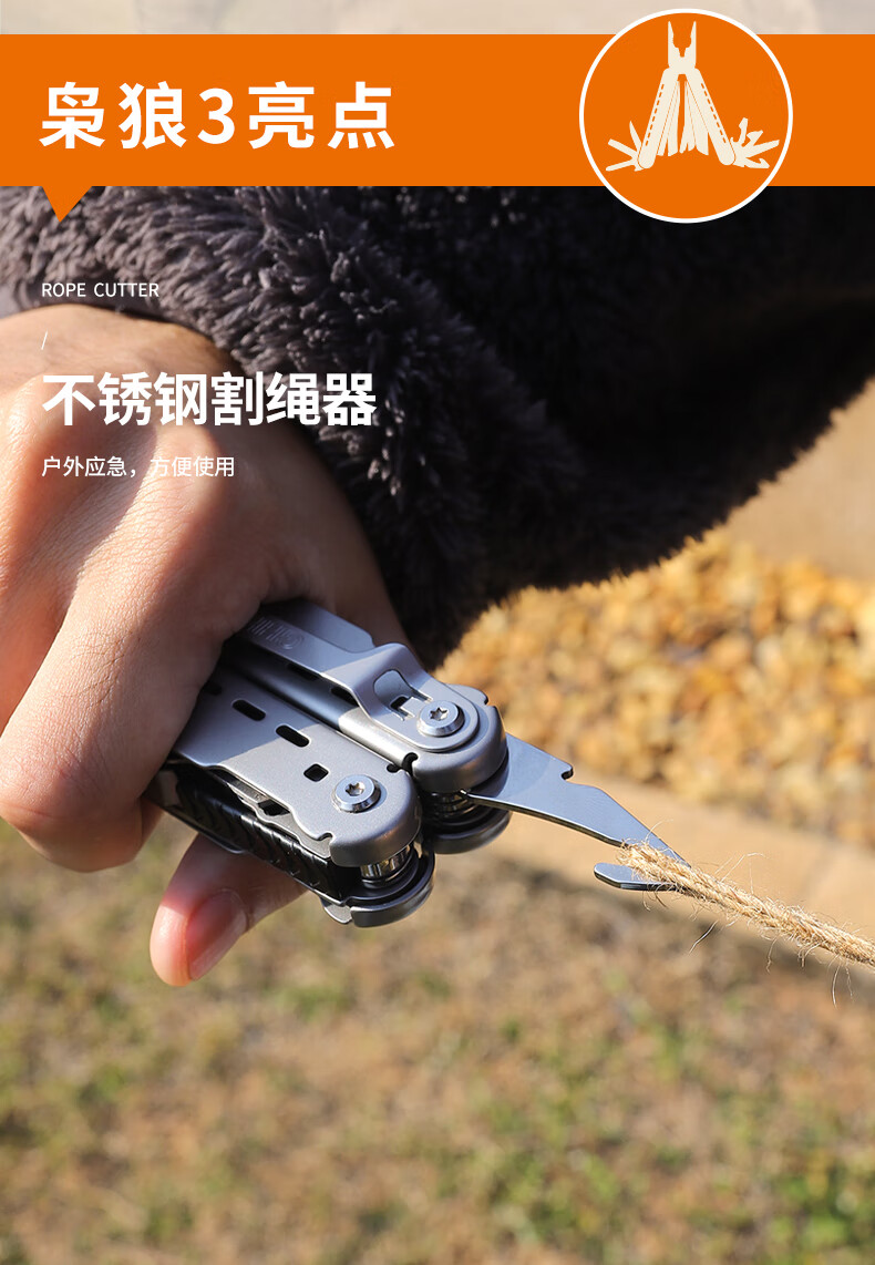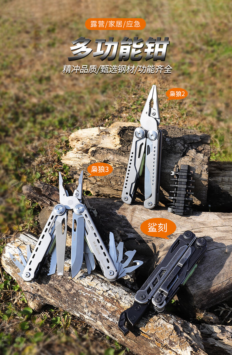 鸿丰户外多功能钳子车载应急工具便携瑞士军士刀万用扳手救援剪刀 鲨刻