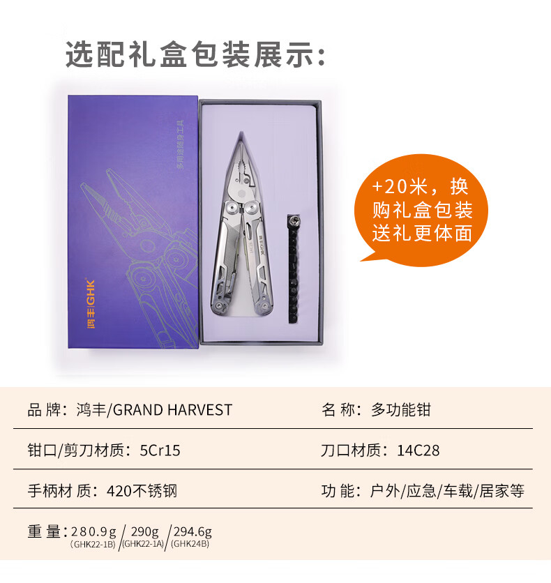 第一,看中鸿丰品牌,钢比较硬,不像便宜工具一用力就坏了;第二,这款工具,拧螺丝工具和批头覆盖整个大小型号;第三,刀和一般工具都有;第四,体积小,重量轻,携带方便,即适合户外,又适合家用。