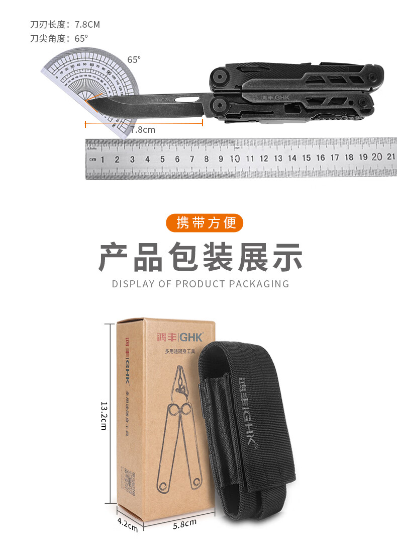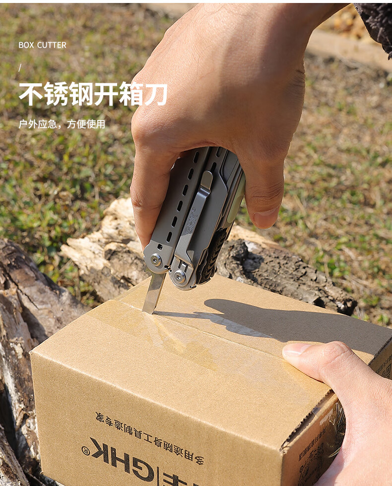鸿丰应急救援多功能工具折叠钳车载防身小刀户外露营装备组合工具剪刀 GHK20石洗版