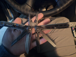 手感很好,表面石洗很有质感,用了两个星期,比较常用是剪刀和钳子,剪刀不大但是剪布和绳子够用,扳手很好玩但是感觉用处有限,要是刀子能替换就好更好了