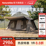 Naturehike挪客Village13屋脊PRO自动速开帐篷 户外露营两室两厅钛黑胶防晒 两室两厅4-6人/PRO/深咖色