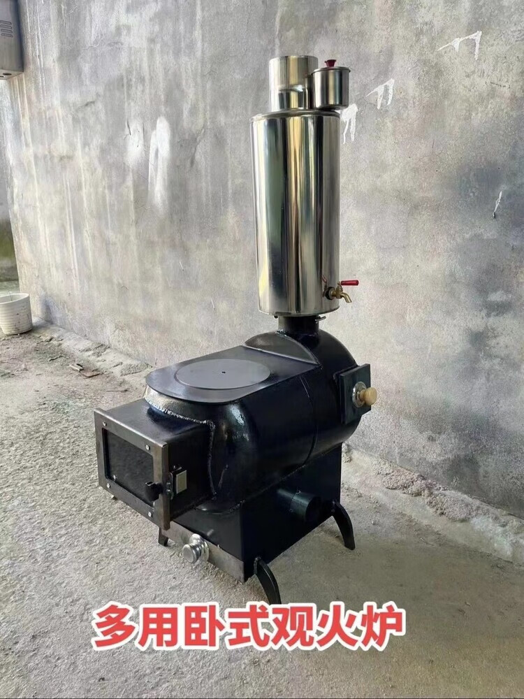 煤气罐改装柴火取暖炉二次进气柴煤两用做饭烧水带烤箱耐高温玻璃 观火炉