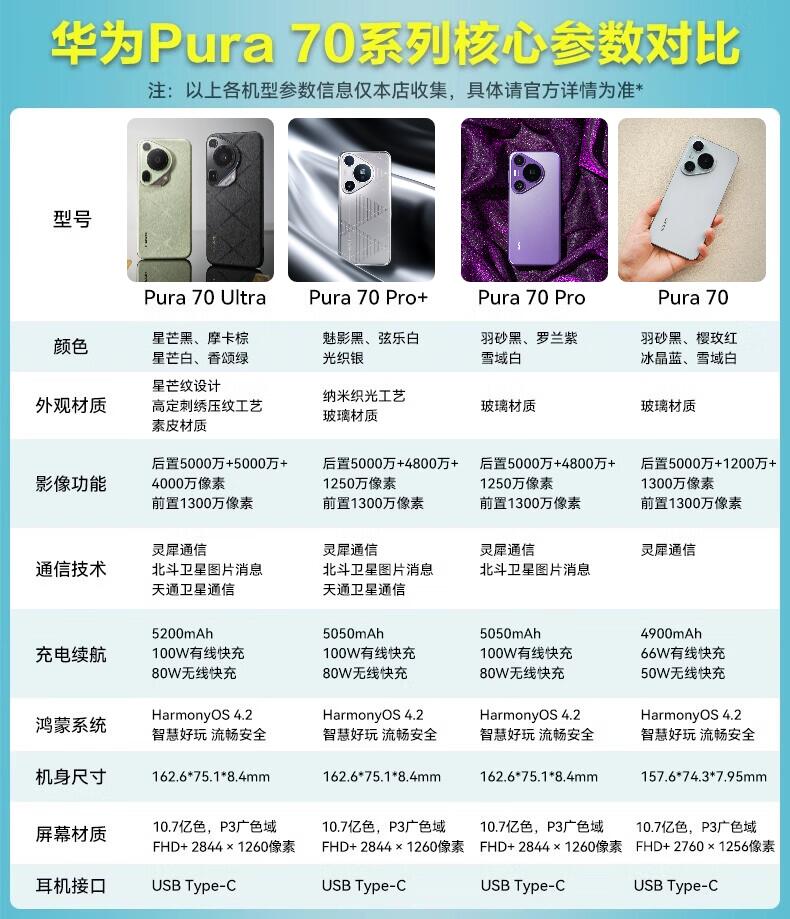 AI大模型,卫星通话,LTPO屏幕,高频PWM调光,全焦段影像,潜望式长焦,防水防尘,无线充电,NFC,红外遥控,大底主摄,等深微曲屏