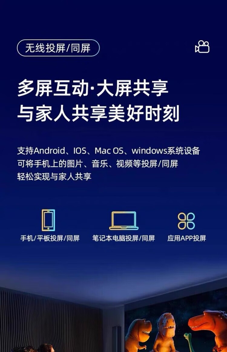 高亮投影,色彩鲜艳细节清晰,自动对焦和梯形校正功能特别贴心,机身小巧不占空间,放在卧室客厅都合适,性价比直接封神,入手不亏