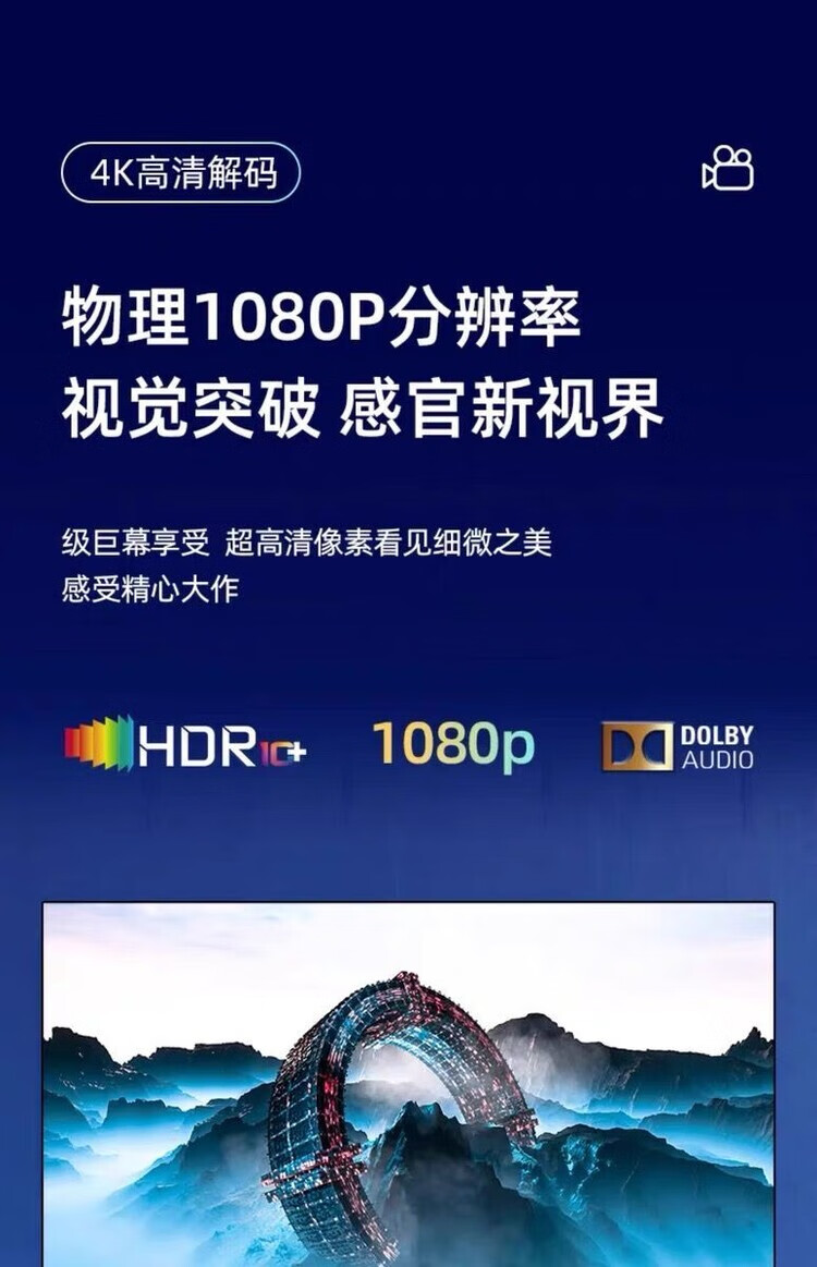 收到就赶紧试了,操作特别简单,色彩正,看电影像在小影院,音质也够用,真的超出预期,平时追追剧、看纪录片太舒服了,真心值!