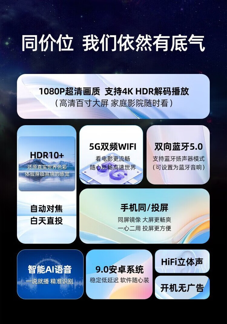 这款华为适用的超高清8K投影仪太惊艳了!画质细腻到能看清每一帧细节,在家就像拥有了私人影院。和华为设备连接秒连,投屏流畅不卡顿,晚上看电影氛围感直接拉满,绝对是影音爱好者的心头好,五星推荐!