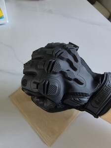 手套很好,包裹性很强,凯芙拉纤维使得非常耐磨且坚固,外形很帅气且具有科幻感,买来骑车用的,不冷手而且戴着手套握着车把有一种人车合一飞一般的感觉,然后骨折了