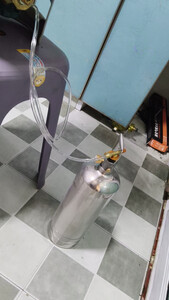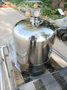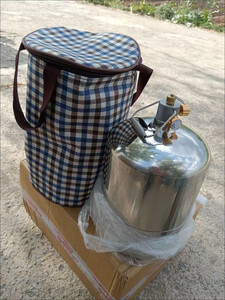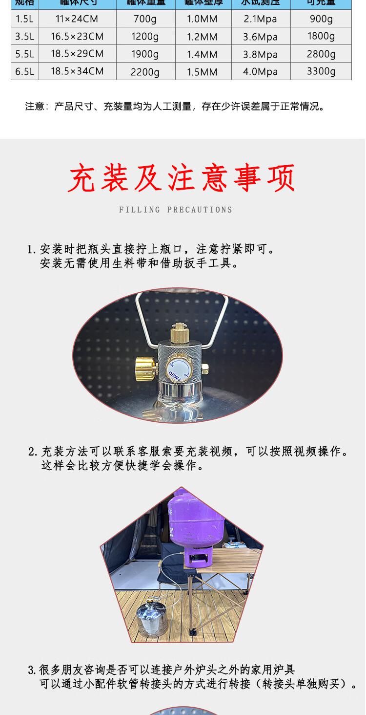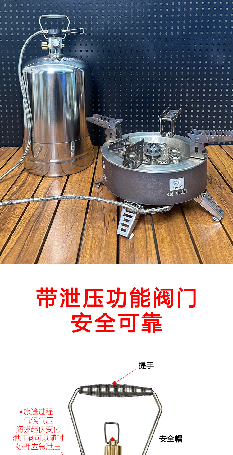 304不锈钢的,厚度可以,做工很好,瓶头功能丰富,能装2.7公斤,比起高山罐能节约很多钱