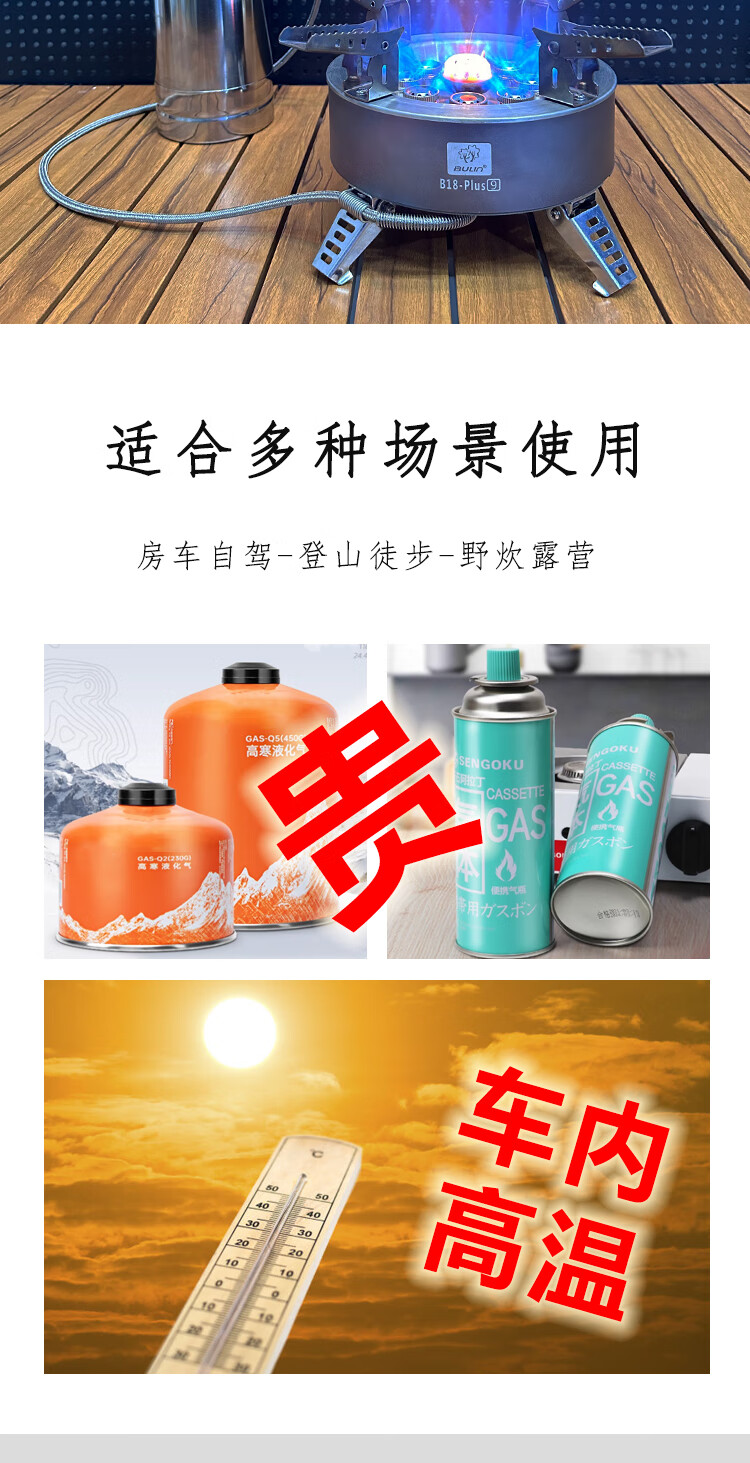 赛多日本进口风神防风稳压登山炉 轻耐低温带稳压器高功率 SOD-310炉头+三角支架