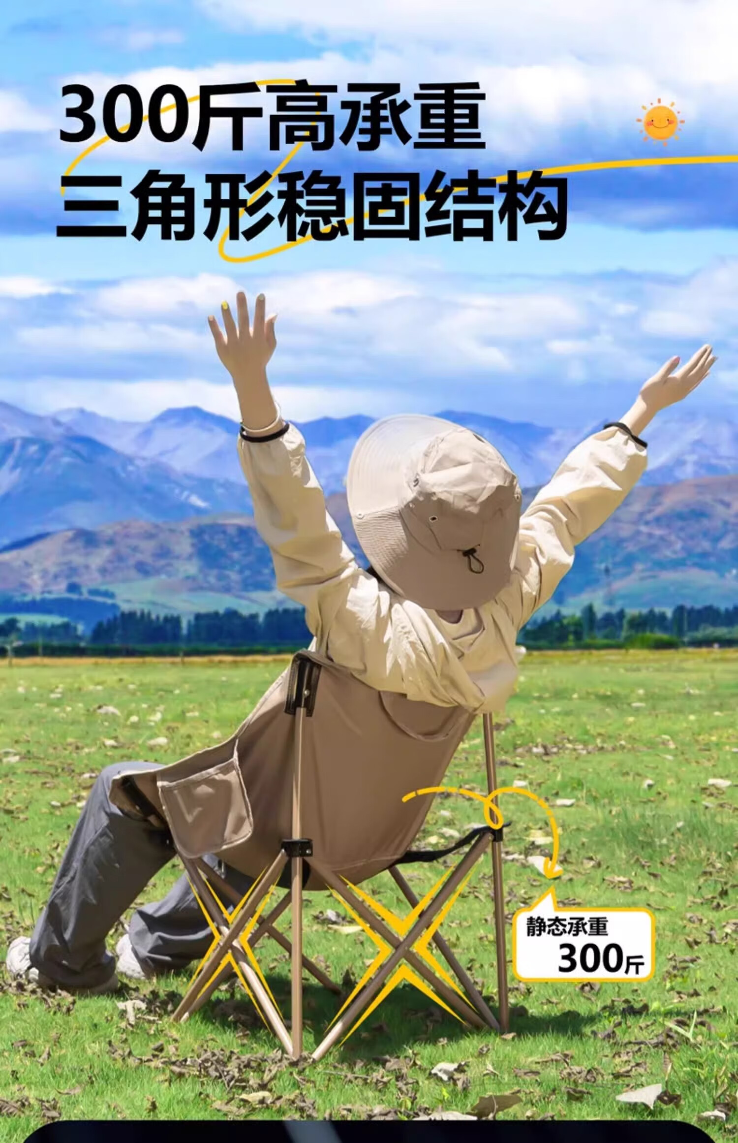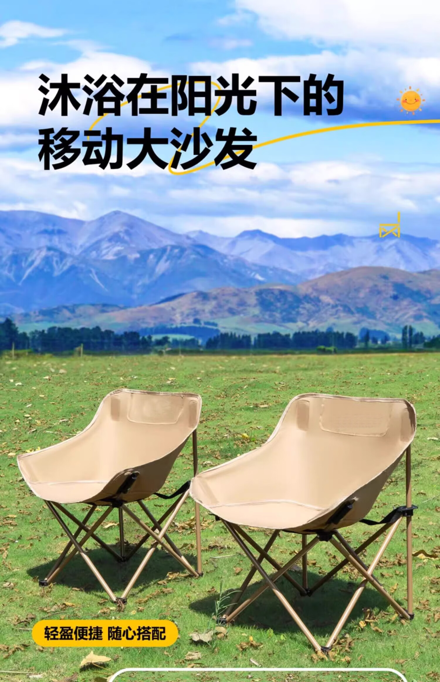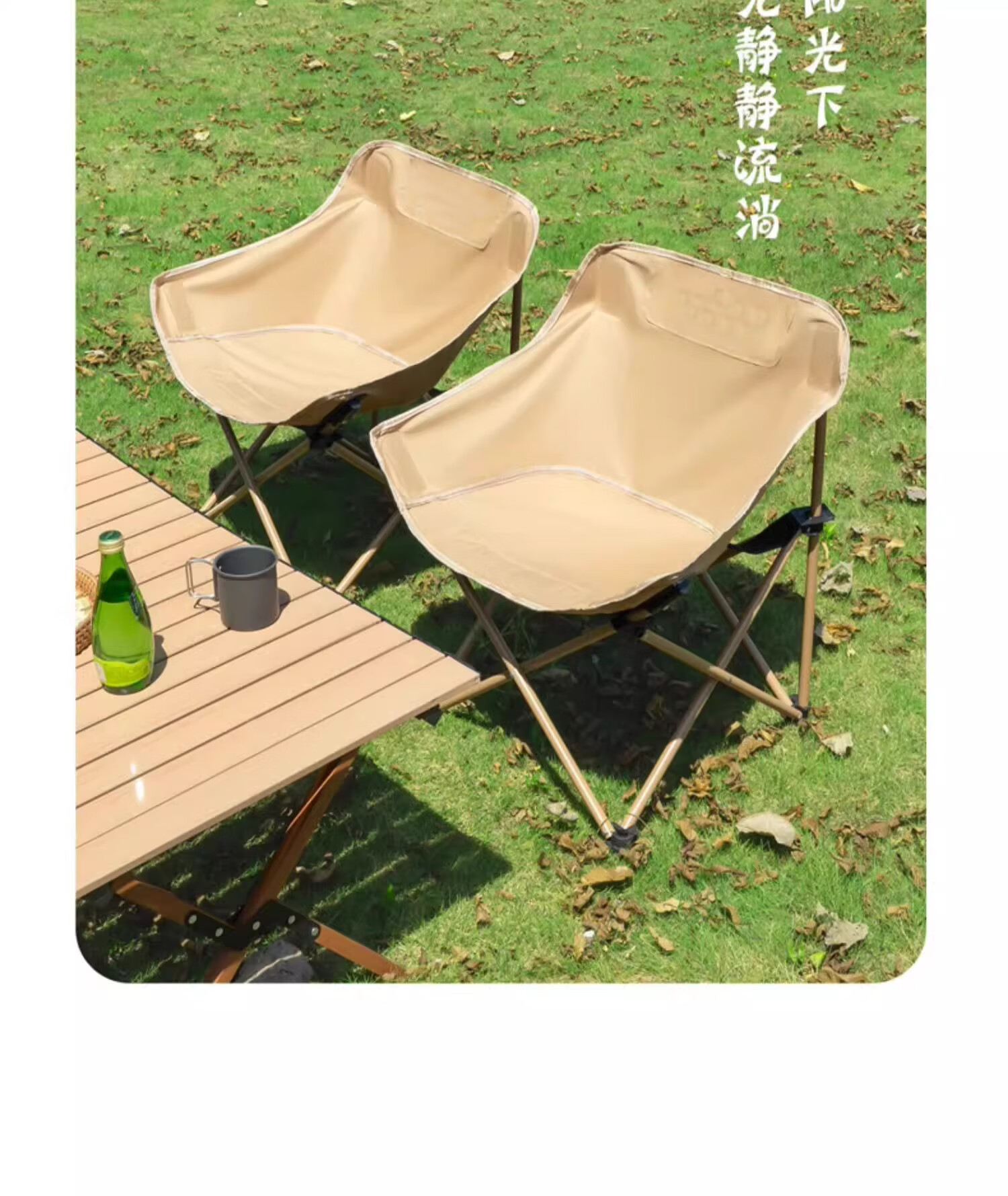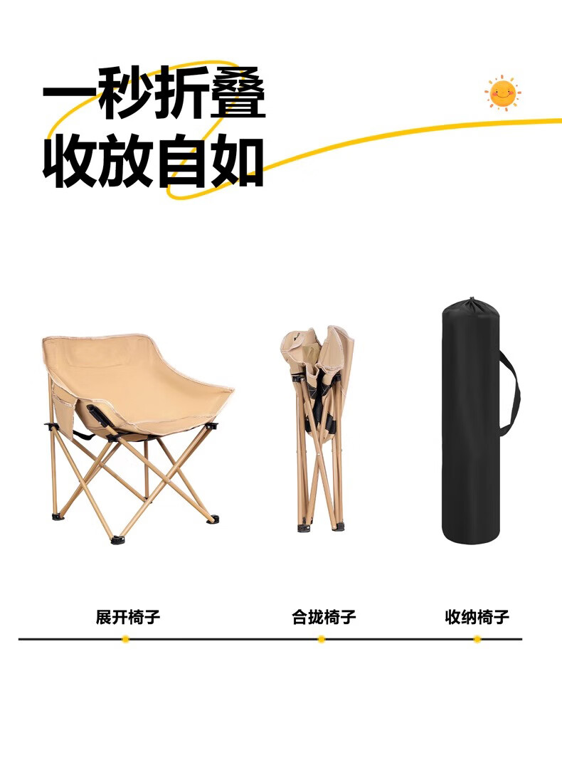 户外折叠椅月亮椅露营椅子便携板凳钓鱼马扎沙滩躺椅野餐高背椅子 【高背月亮椅/曜黑色】六层夹棉/管套加固(送收纳袋)