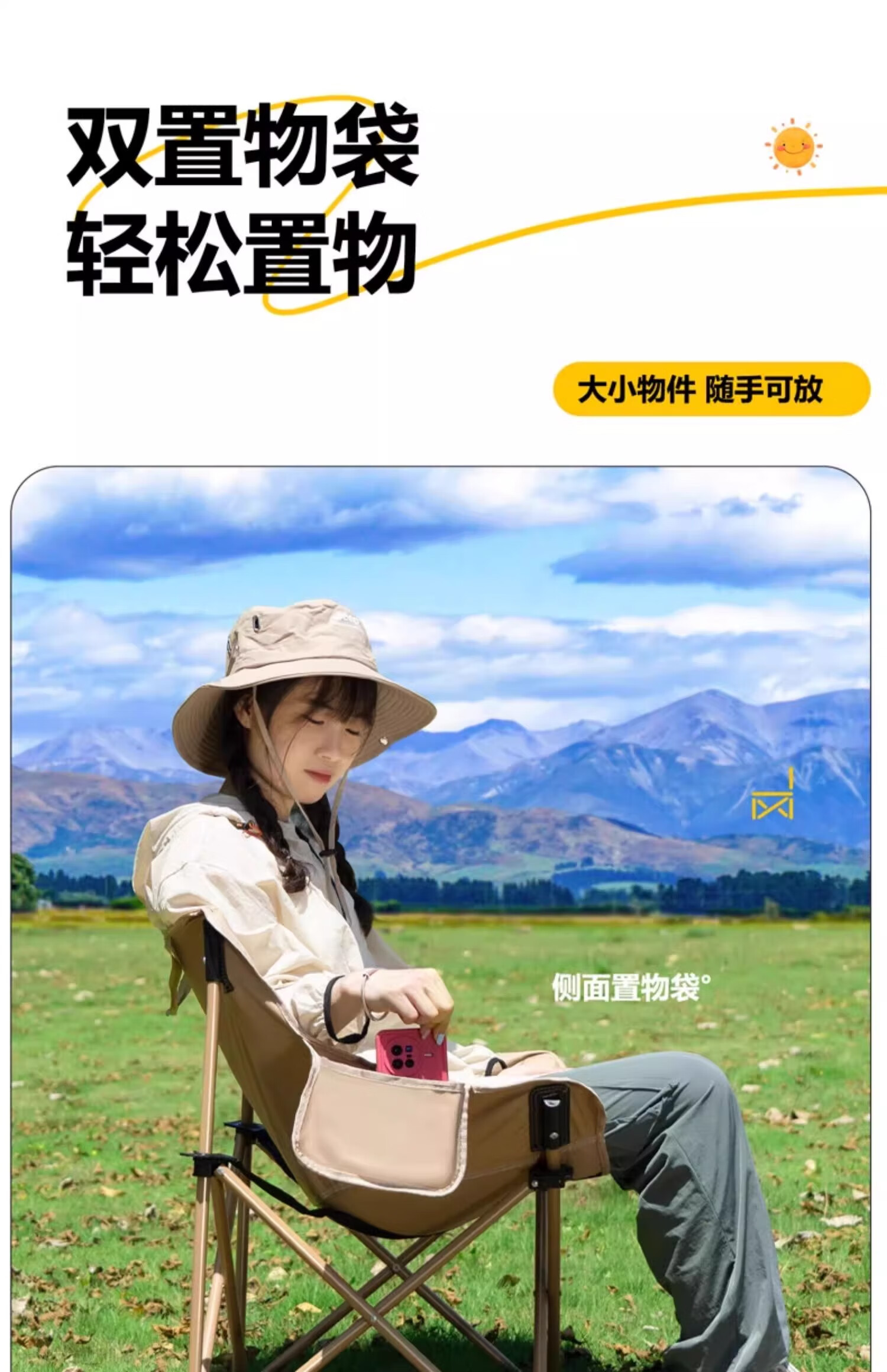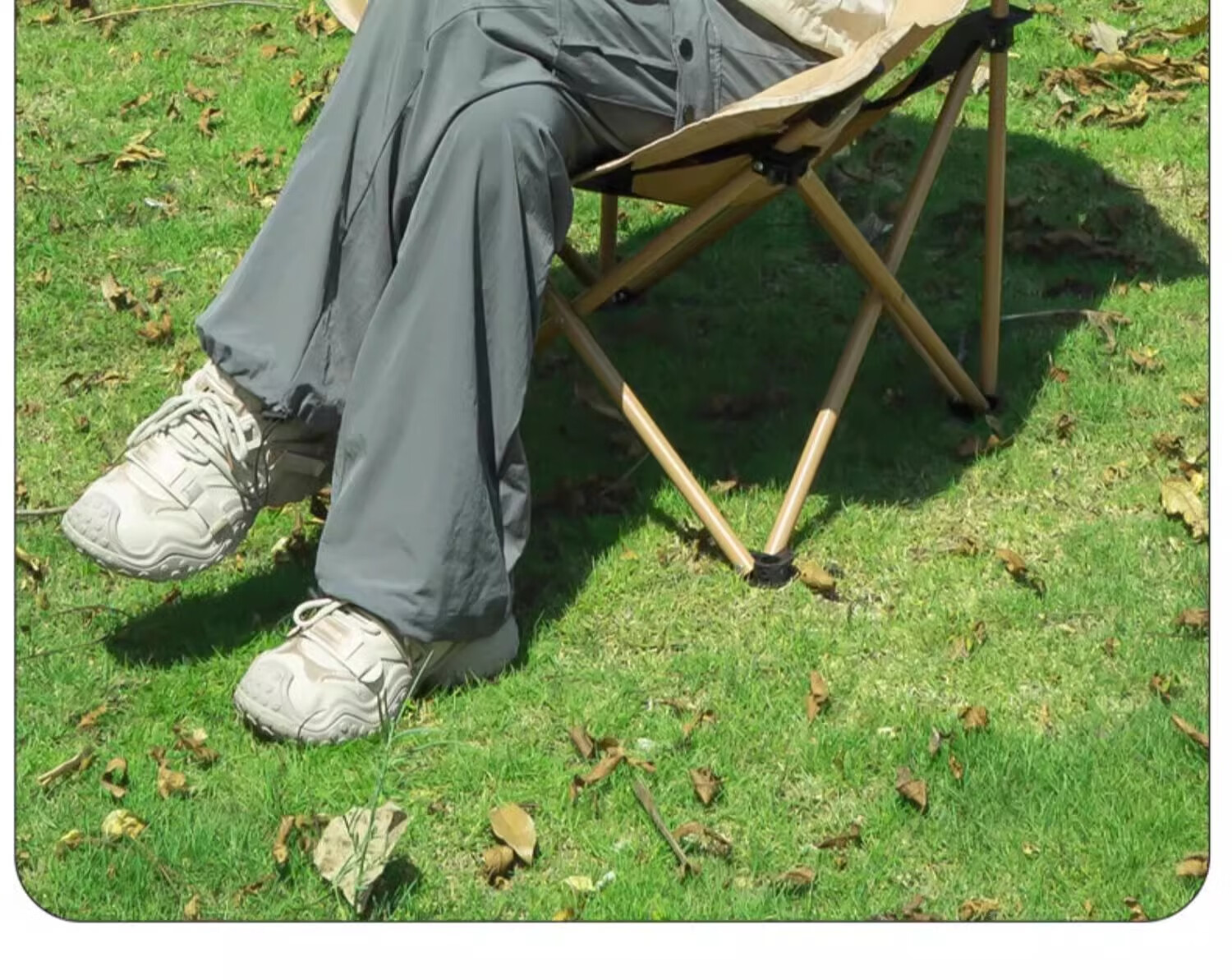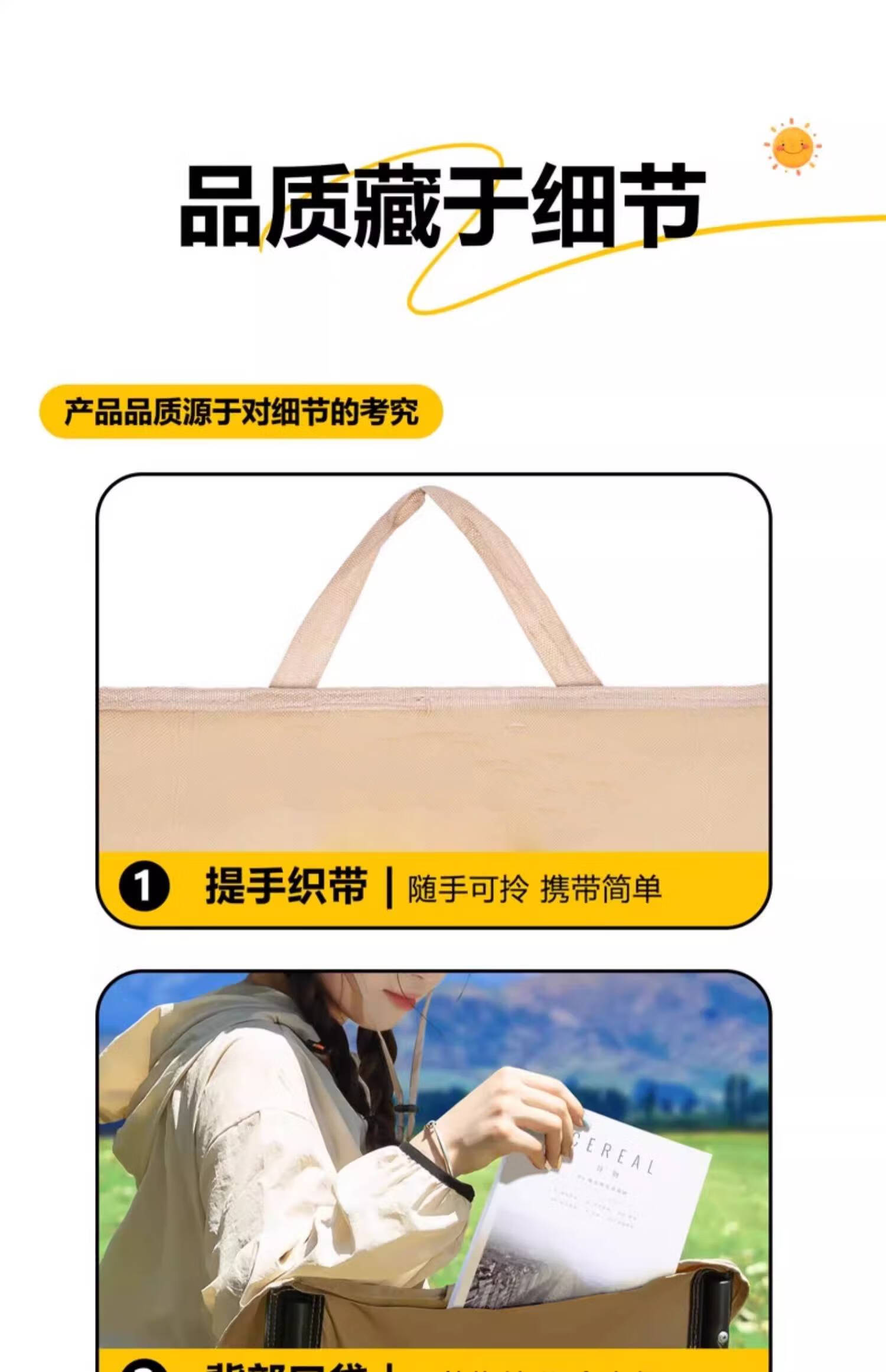 户外折叠椅月亮椅露营椅子便携板凳钓鱼马扎沙滩躺椅野餐高背椅子 【高背月亮椅/曜黑色】六层夹棉/管套加固(送收纳袋)
