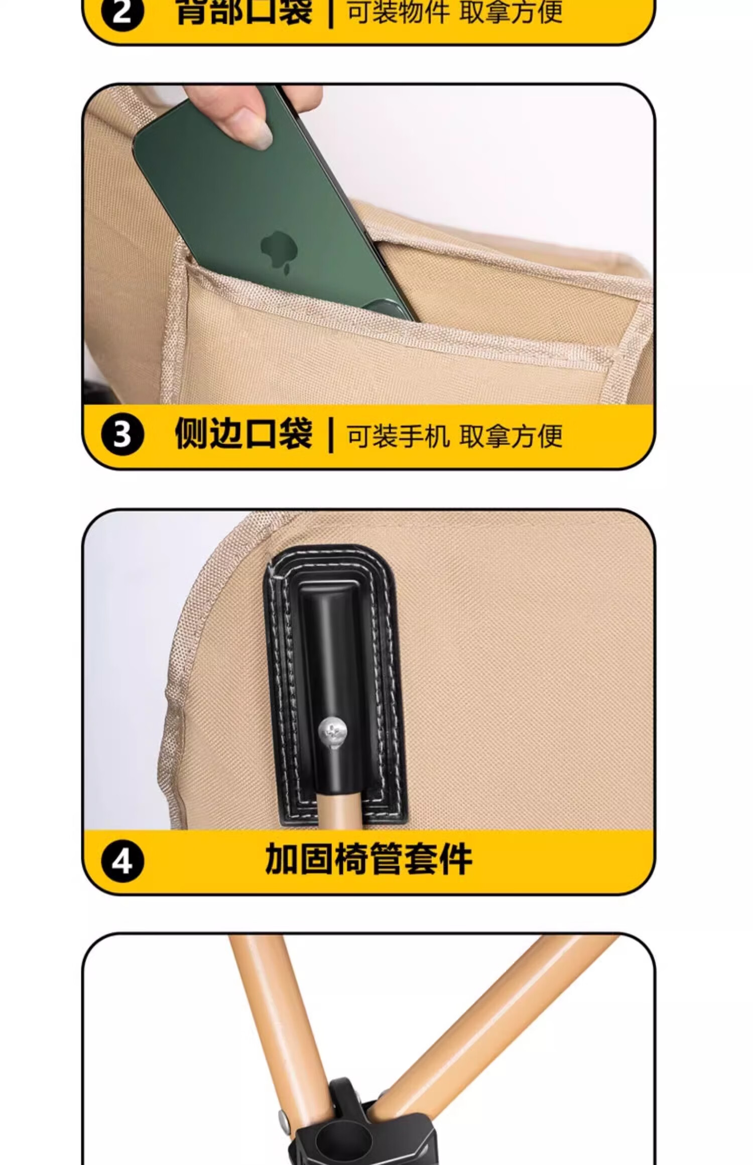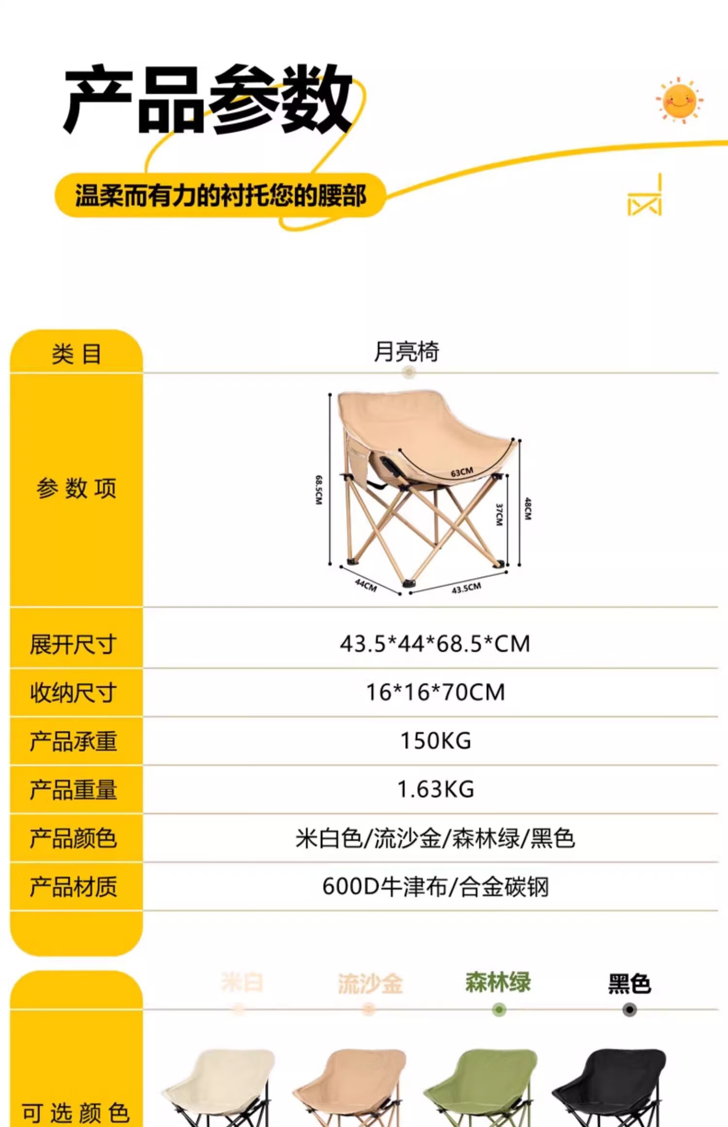 智宙户外折叠椅月亮椅替换布配件600D加粗加厚牛津布椅面懒人椅 三挡调节两档调节通用高背黑色[