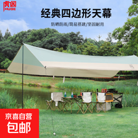 天幕 户外天幕帐篷 露营帐篷野营烧烤防雨防水防晒遮阳棚六角涂银 210T加厚牛津布拼色4.38*2.92米