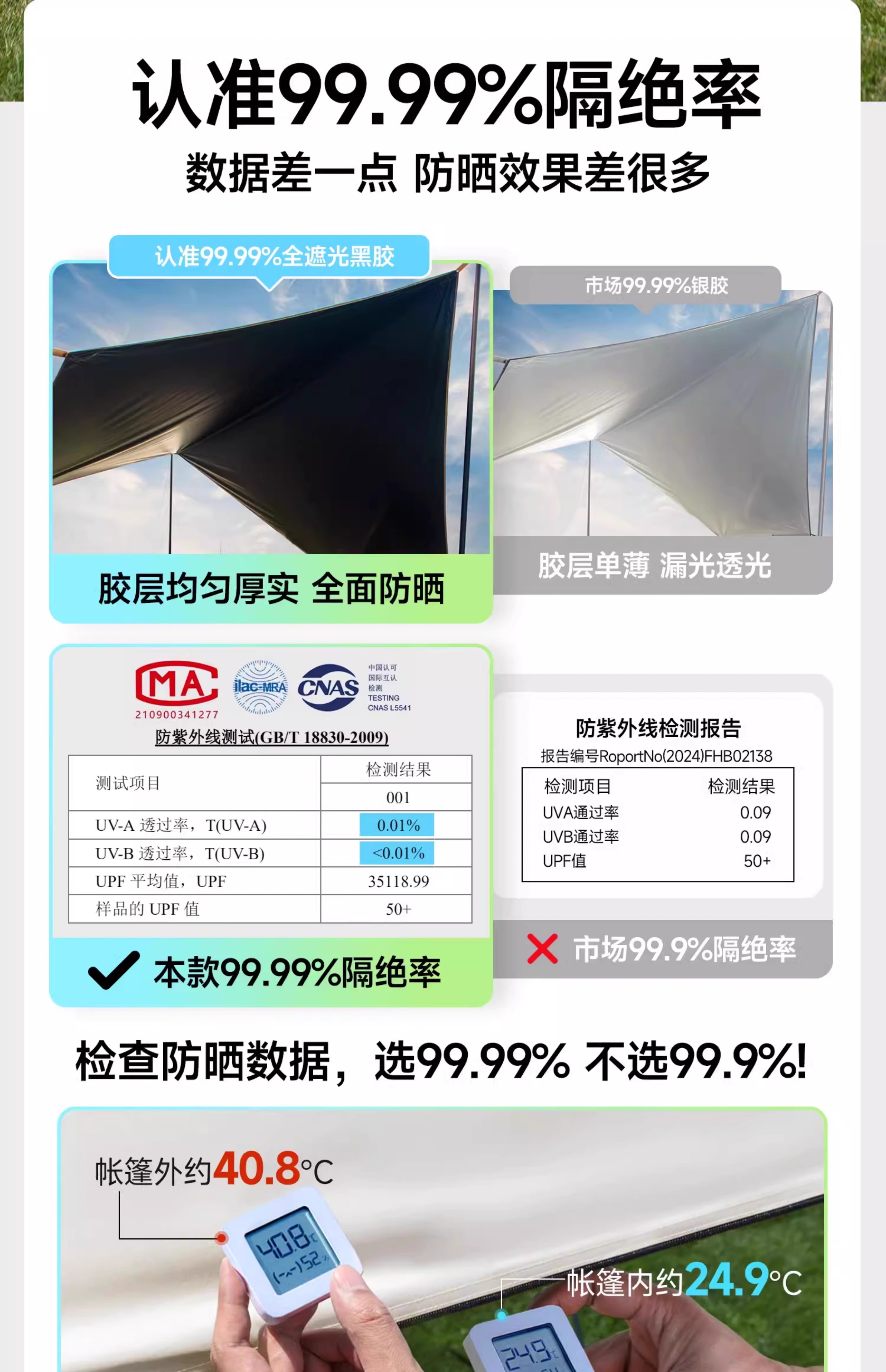 黑胶帐篷天幕二合一超实用,便携又轻便。质量一流,防风防雨效果极佳,露营必备神器!