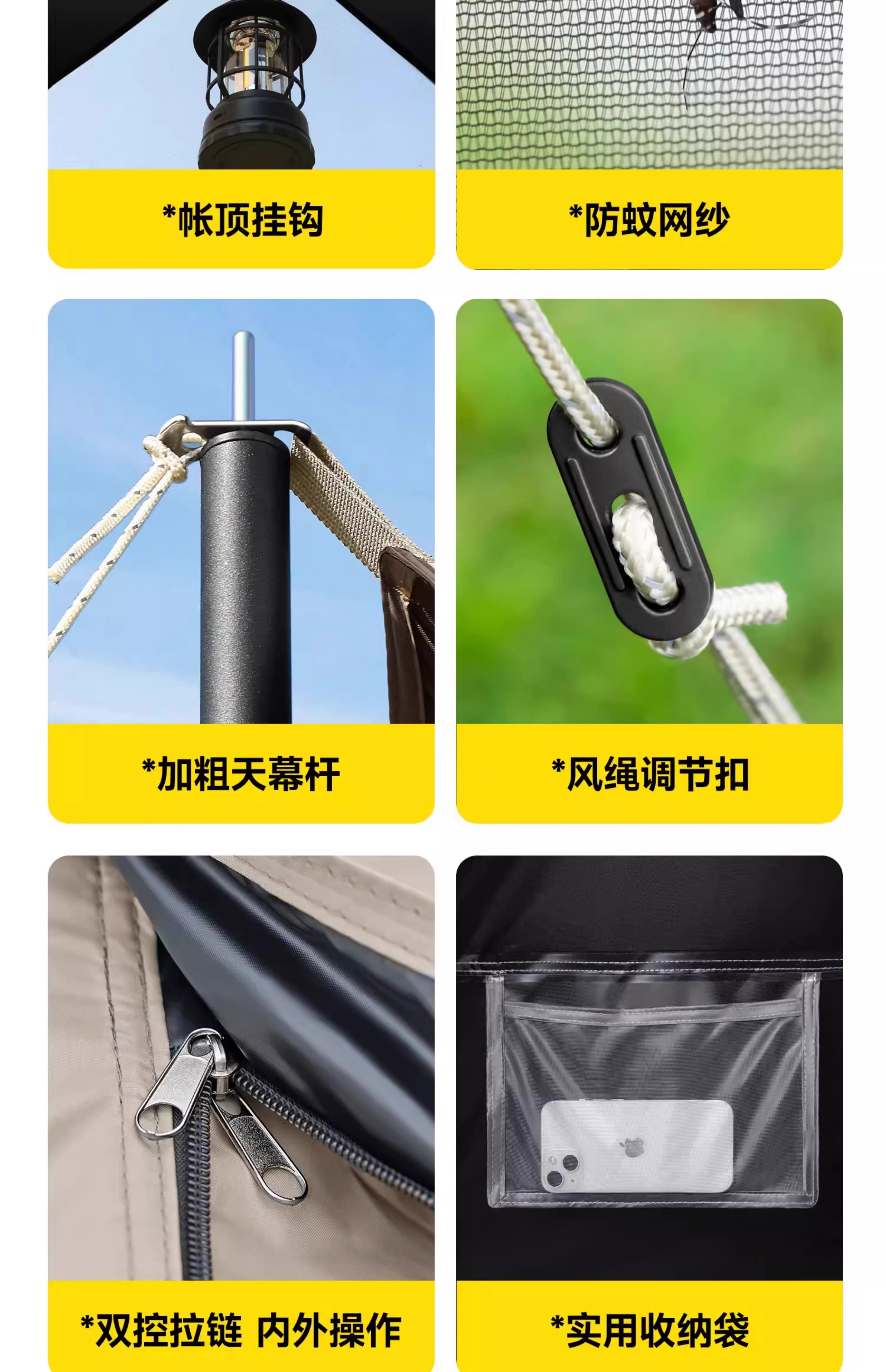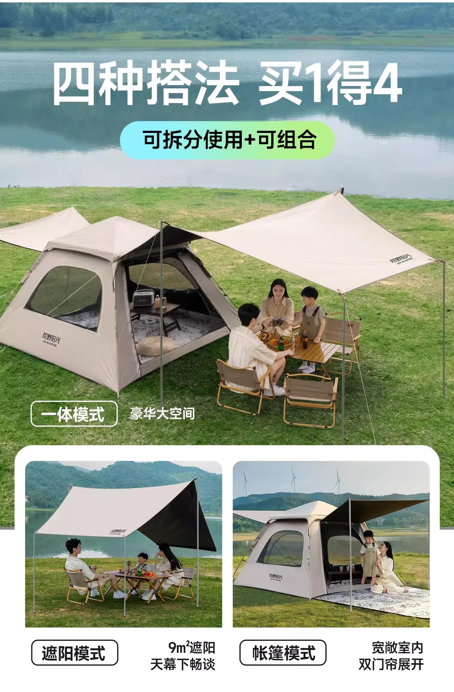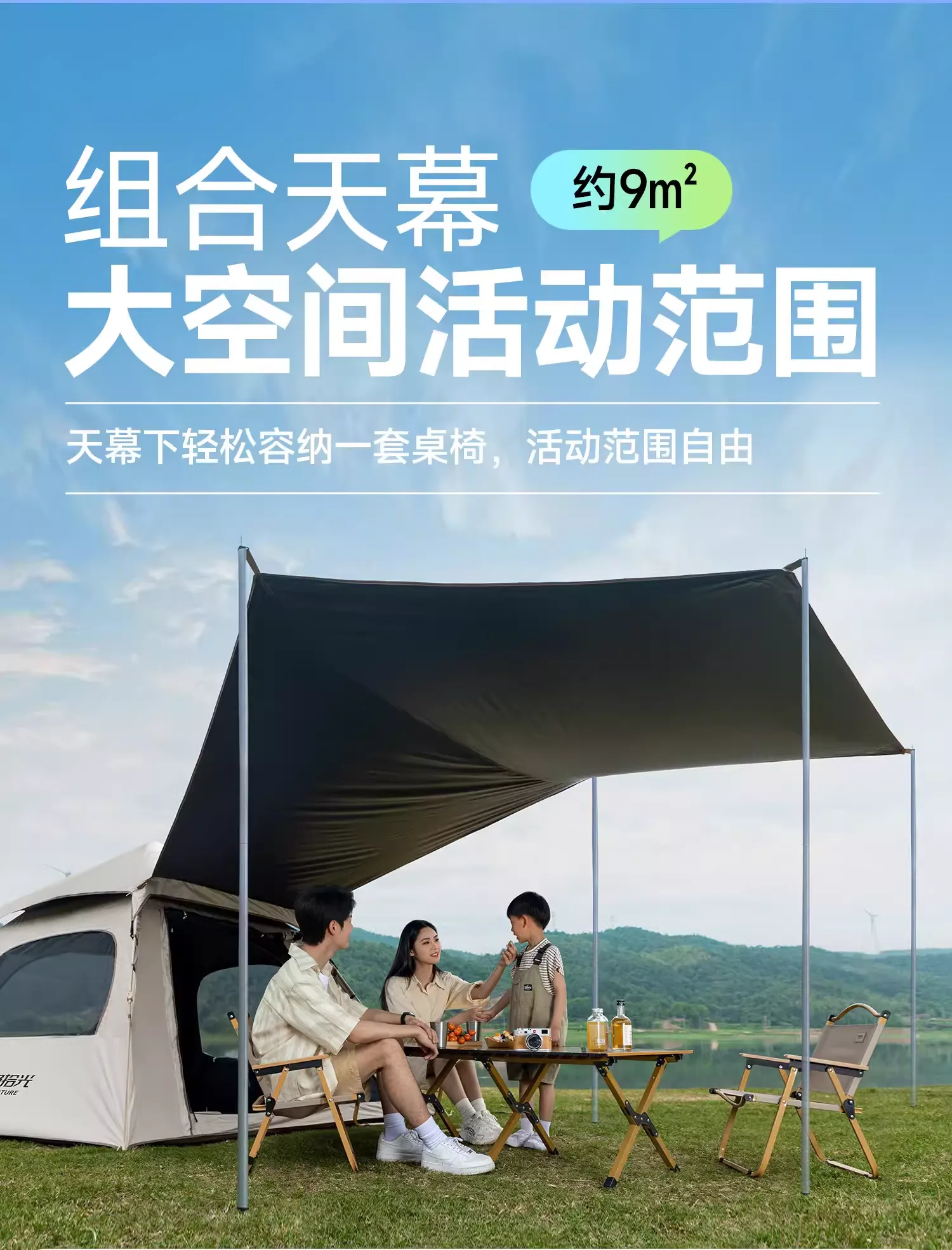 荒野拾光帐篷天幕二合一户外家庭野外露营装备全套一体全自动免搭快速打开 【一步到位很省心】露营全家桶 专业便携式折叠公园沙滩防雨过夜