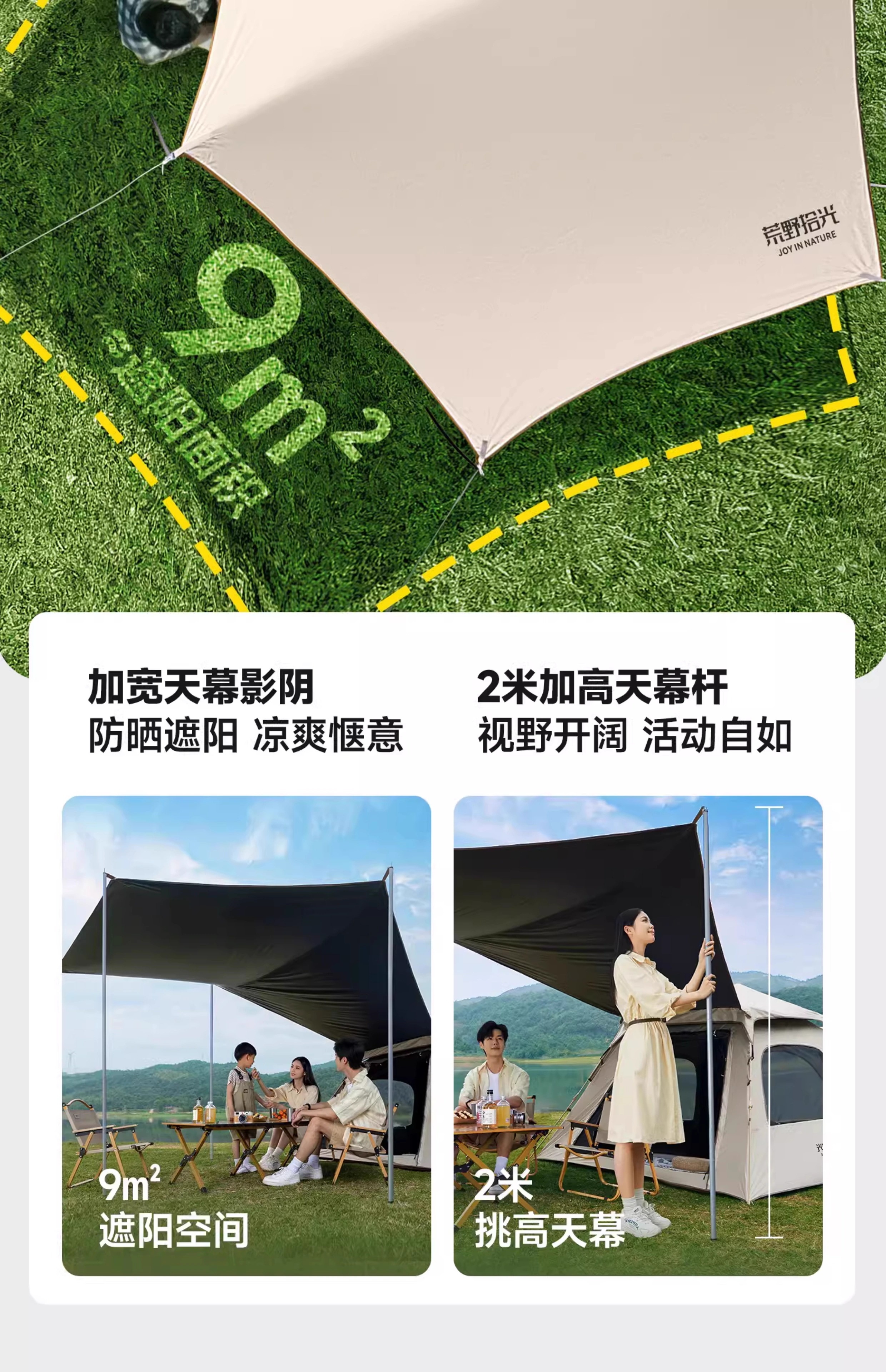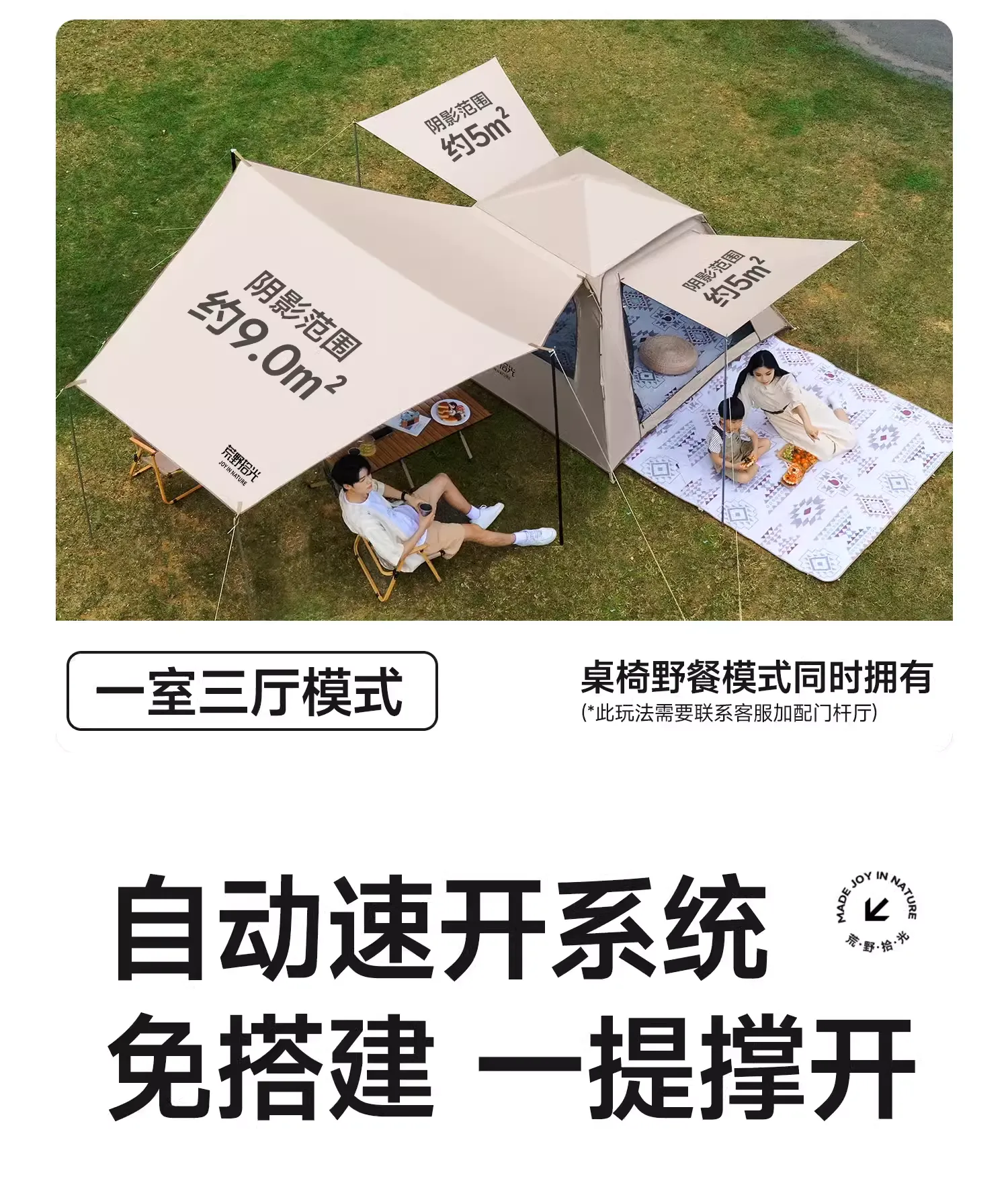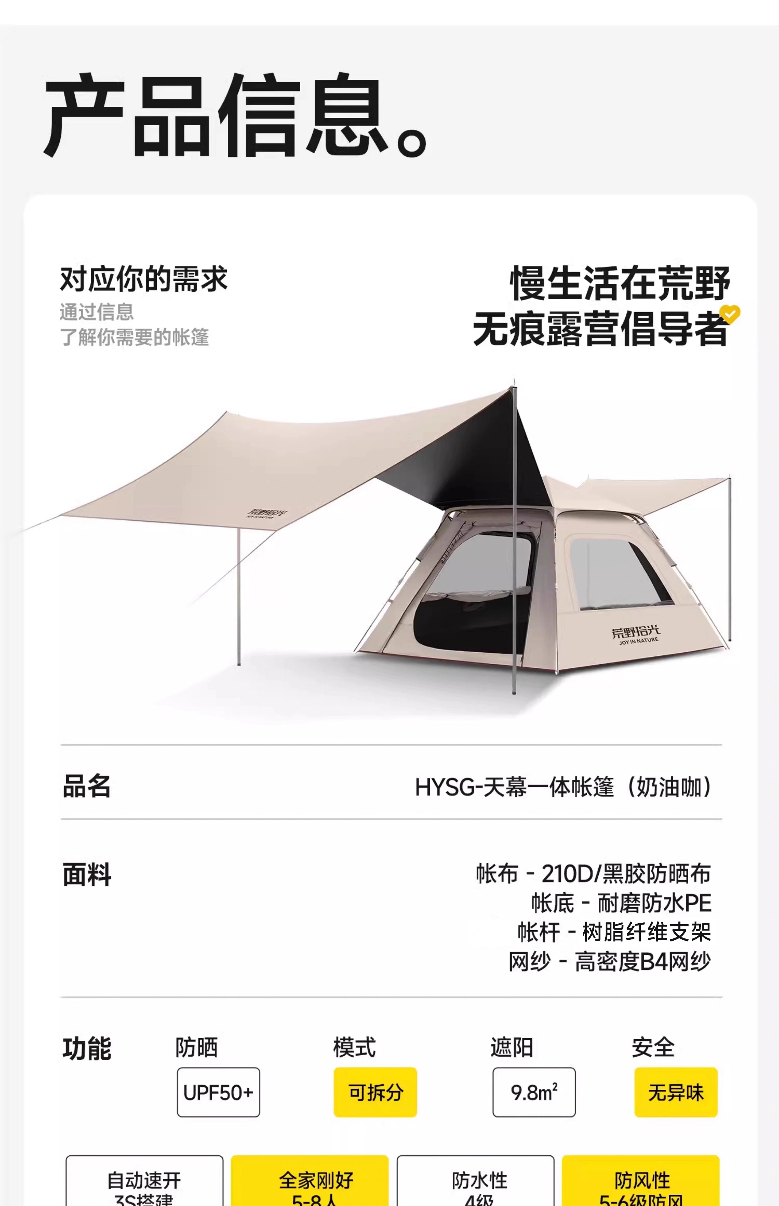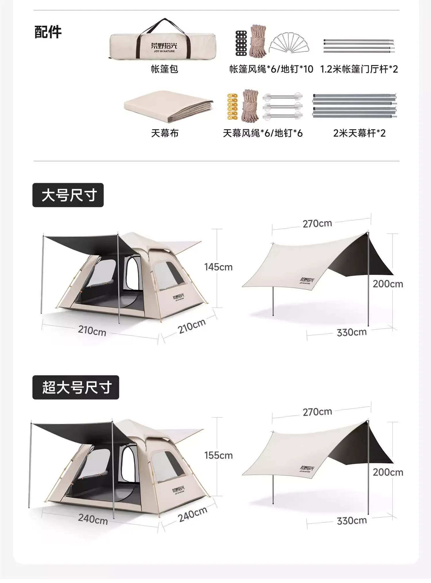 荒野拾光帐篷天幕二合一户外家庭野外露营装备全套一体全自动免搭快速打开 【一步到位很省心】露营全家桶 专业便携式折叠公园沙滩防雨过夜