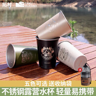拓村户外露营便携式餐具厨具套装304不锈钢雪拉碗餐盘水杯茶杯筷子 【混合色】350ML不锈钢水杯5件套(送收纳袋)