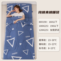皓润琪 纯棉成人睡袋大人室内办公室午休被学生宿舍春秋薄款冬季防踢被 几何三角 100*225秋冬款