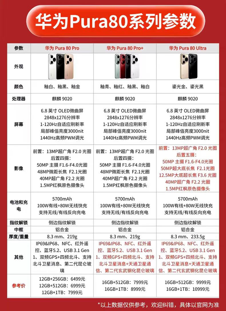 AI大模型,卫星通话,轻薄,LTPO屏幕,高频PWM调光,全焦段影像,潜望式长焦,防水防尘,无线充电,NFC,红外遥控,大底主摄,等深微曲屏