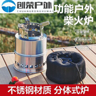 柴火灶农村家用灶便携式折叠露营自驾游烧水炉不锈钢野外野炊外 外野炊炉具
