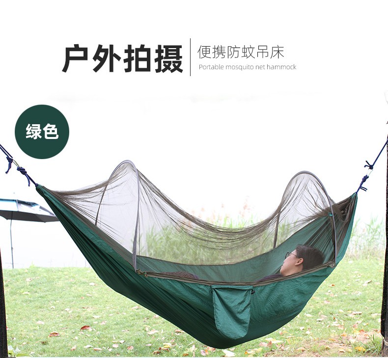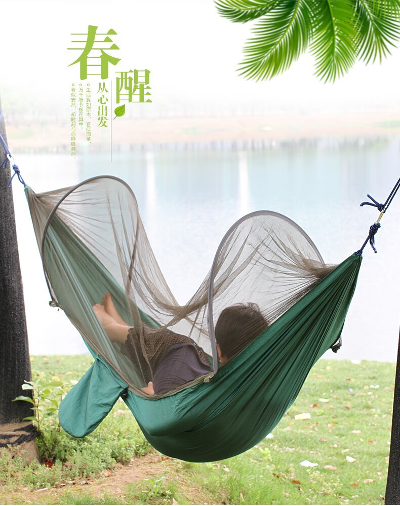 盛源 户外降落伞布吊床 轻便 野外露营休闲秋千有加粗绑绳 挂扣 双人 墨绿配果绿