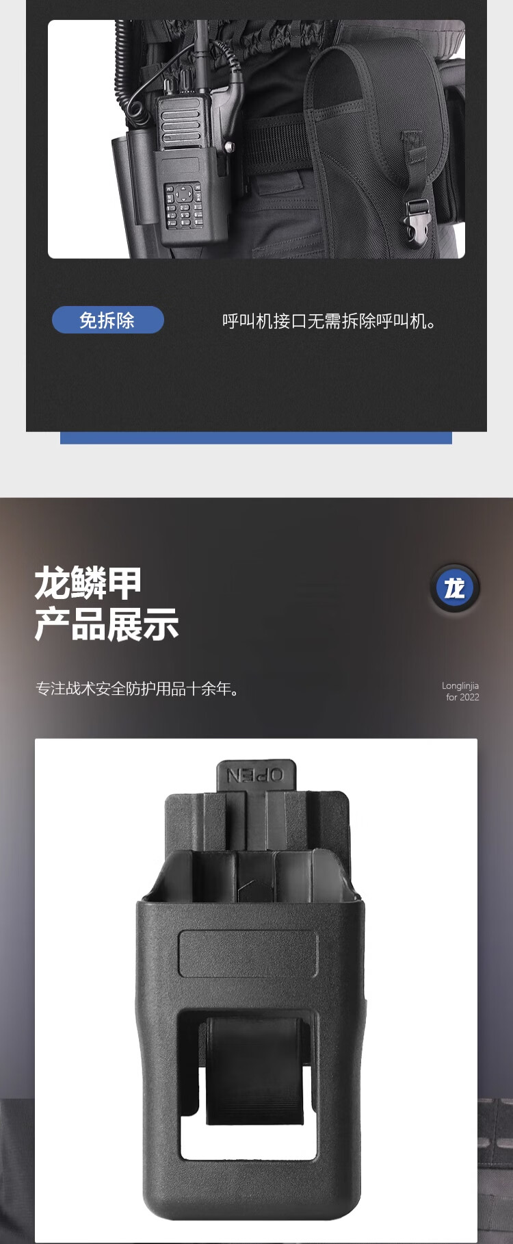 产品颜色:无色差,所见即所得。 尺码大小:配合龚发对讲机,完美适配,不用取下对讲机夹子。 其他特色:龙鳞甲j用装备质量做工较好,性价比高,对于自购党来说,是一个很好的选择。