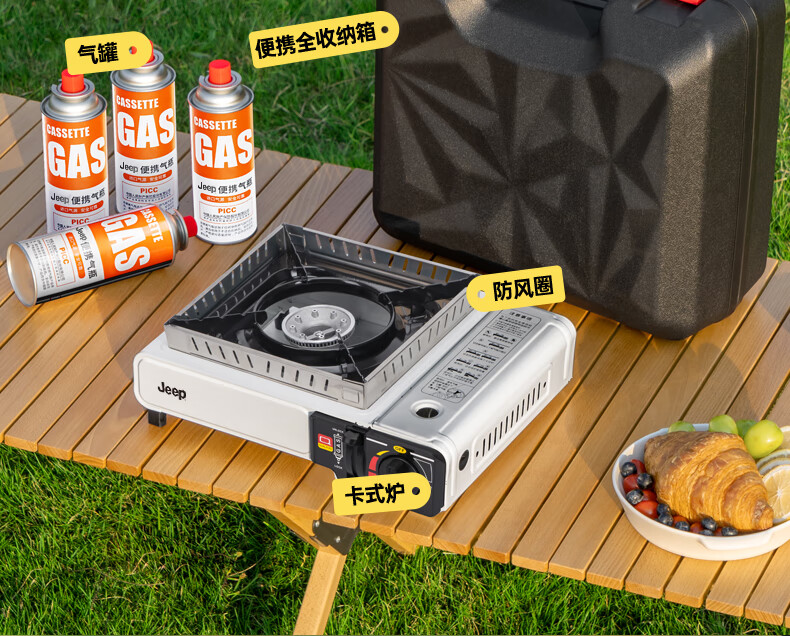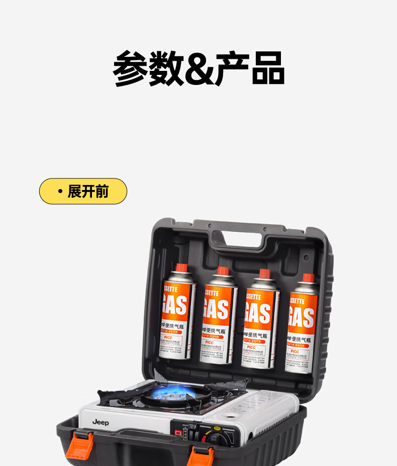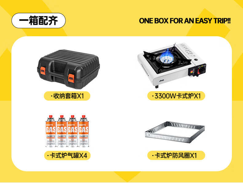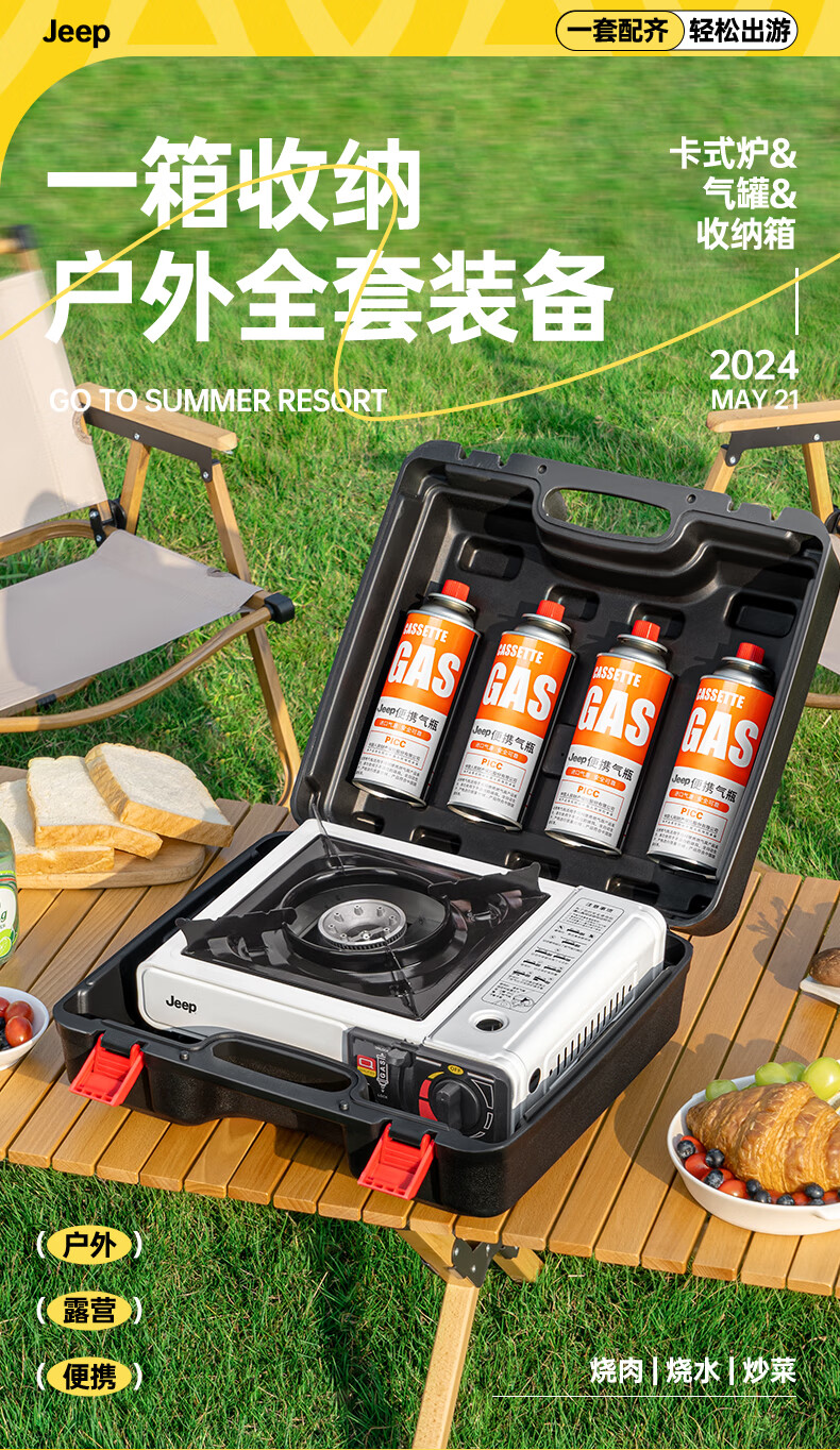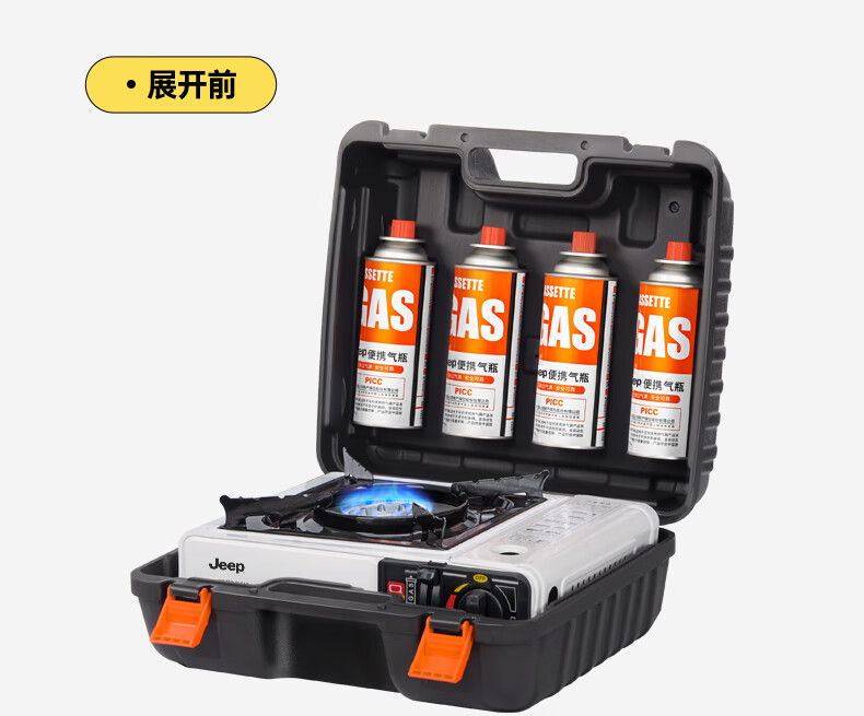 JEEP 新款便携式卡式炉套餐户外野炊燃气炉家用野营气炉烧烤炉 单炉+4瓶气+全收纳套盒
