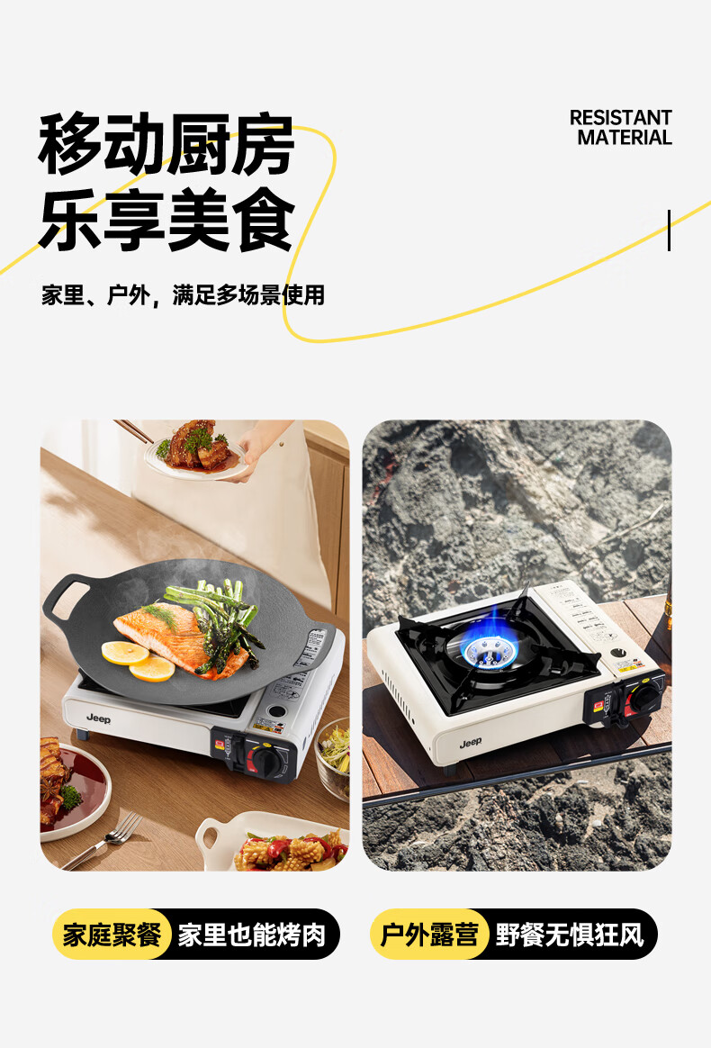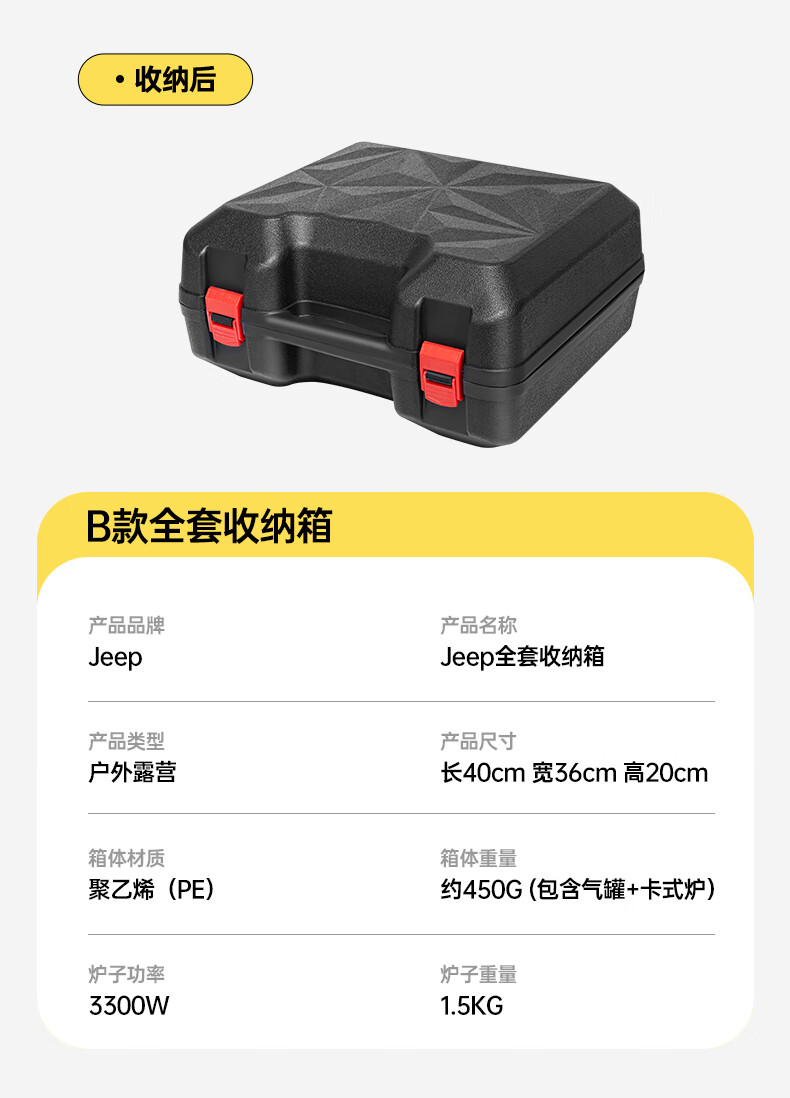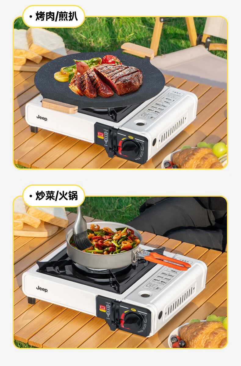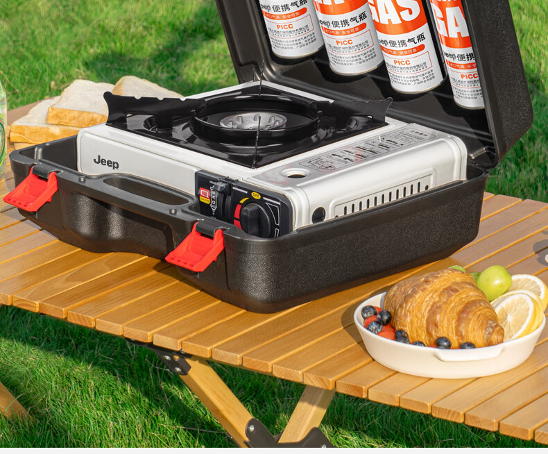 JEEP 新款便携式卡式炉套餐户外野炊燃气炉家用野营气炉烧烤炉 单炉+4瓶气+全收纳套盒