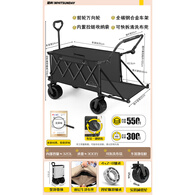 疆屿户外露营车便携折叠营地推车野营拉车摆摊快递拖车儿童可躺拉车 黑色聚拢MAX拖斗推拉一体