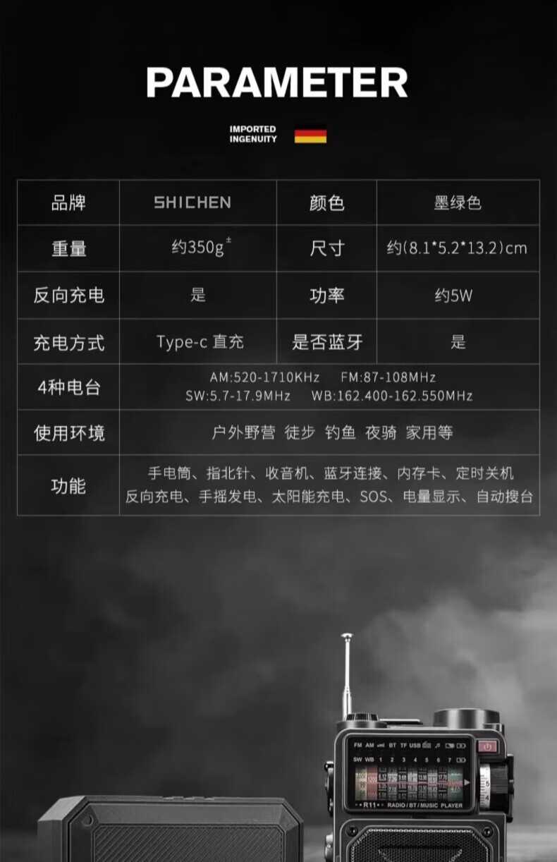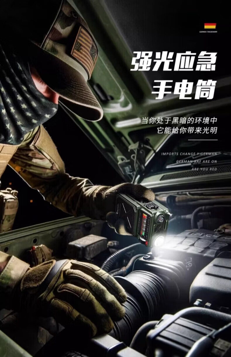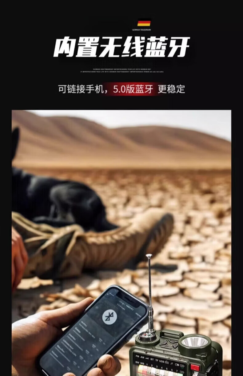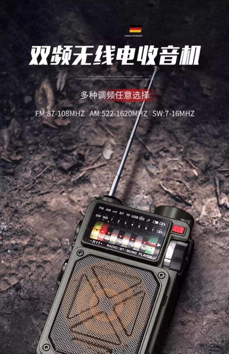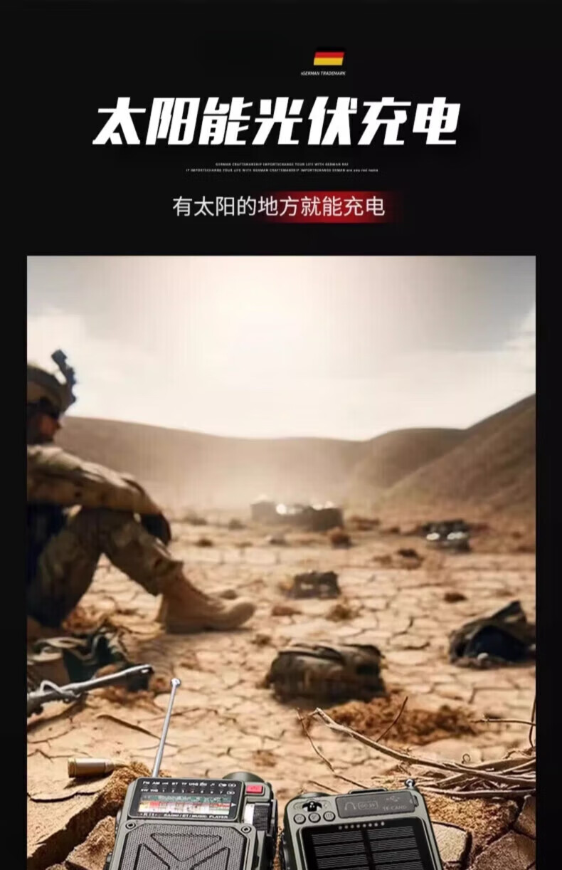 狮晨防灾应急手摇发电式收音机强光手电筒救灾户外太阳能多功能充电 德式备战收音机+8G内存卡+战纳包