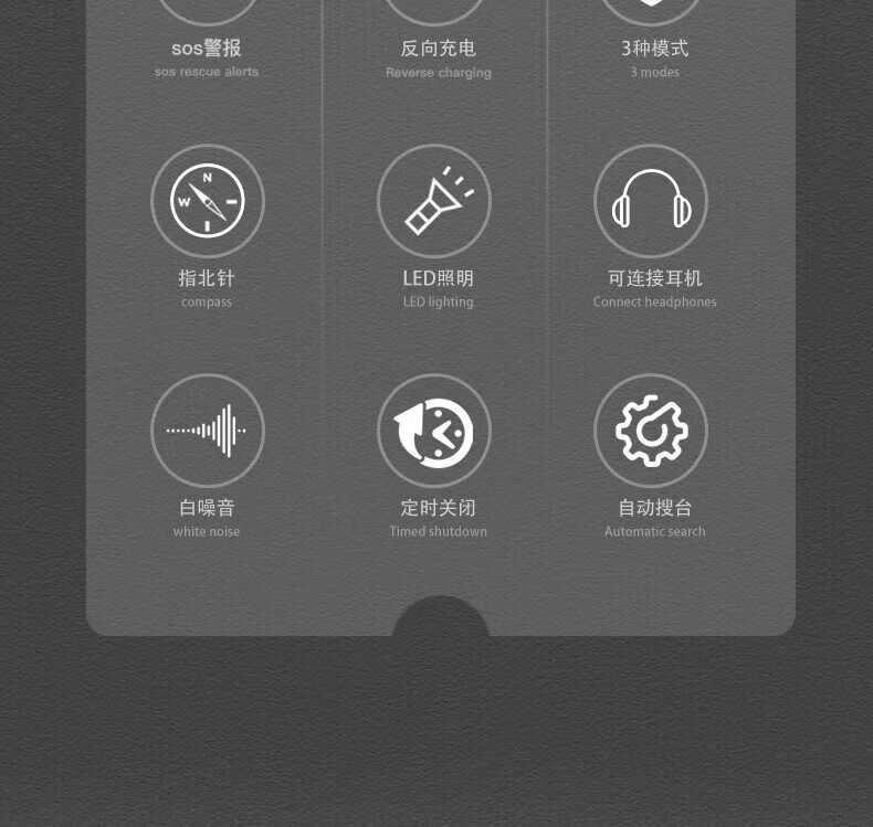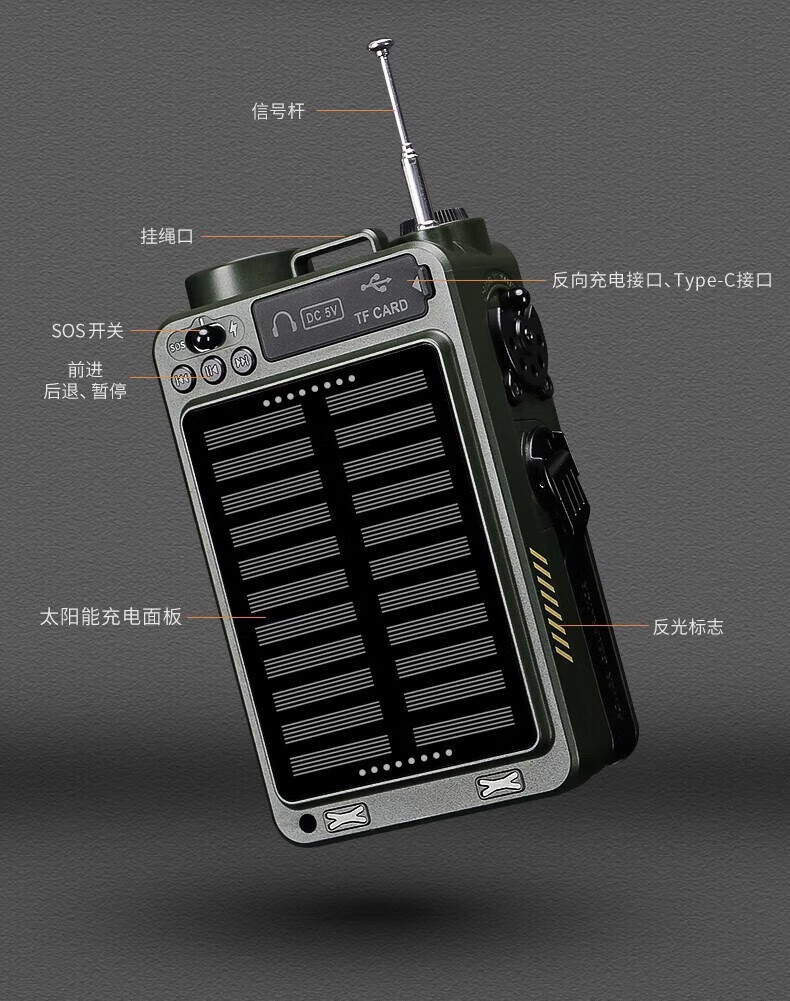 功能齐全,太阳能和手摇发电很好用,收音效果很好,携带方便。